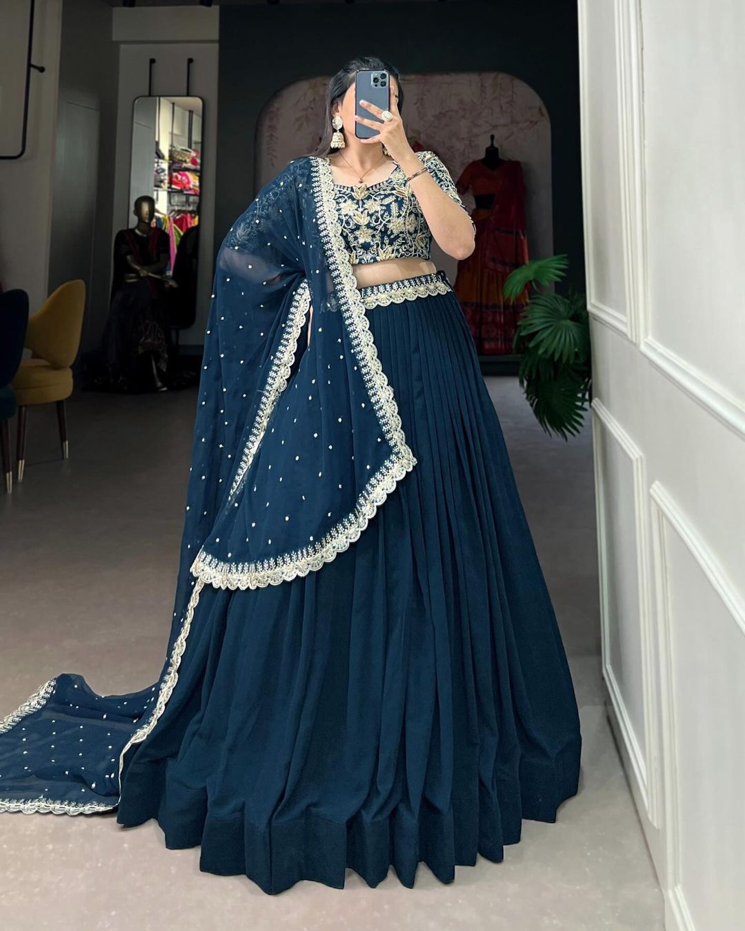 Elevate Your Ethnic Wardrobe with a Gorgeous Georgette Lehenga Choli and an Intricately Embroidered Banglory Blouse