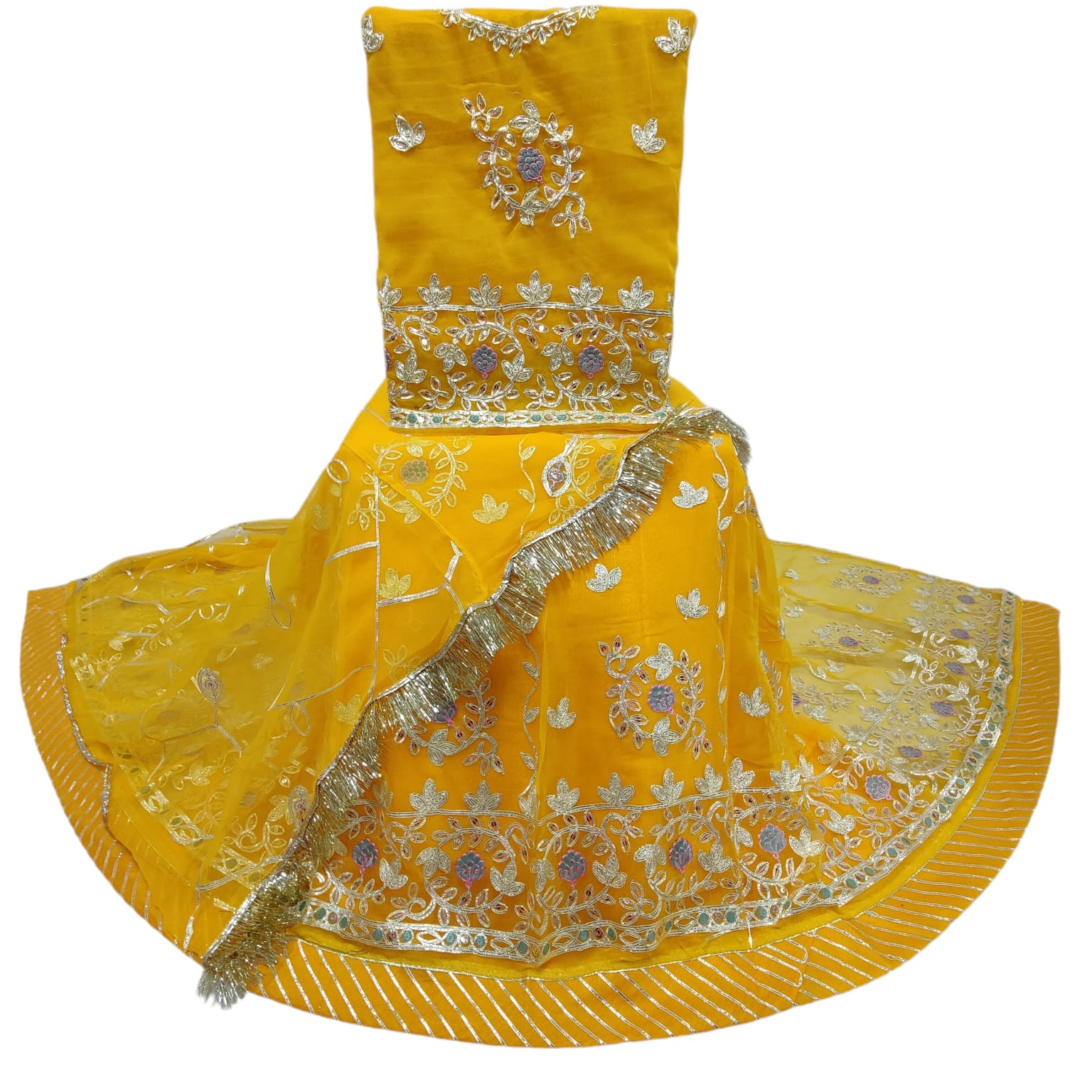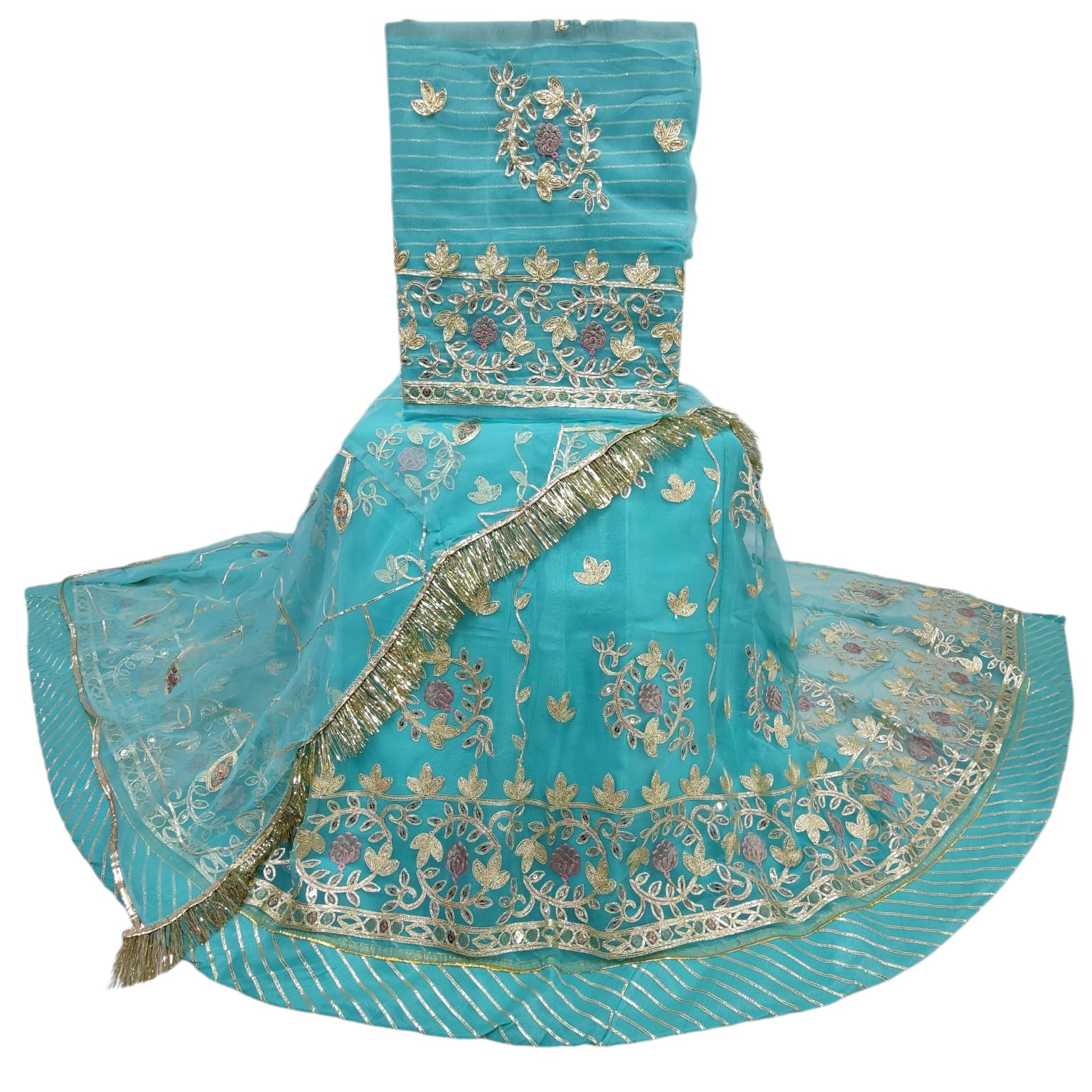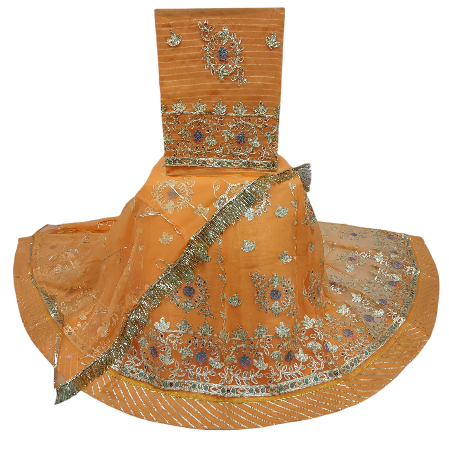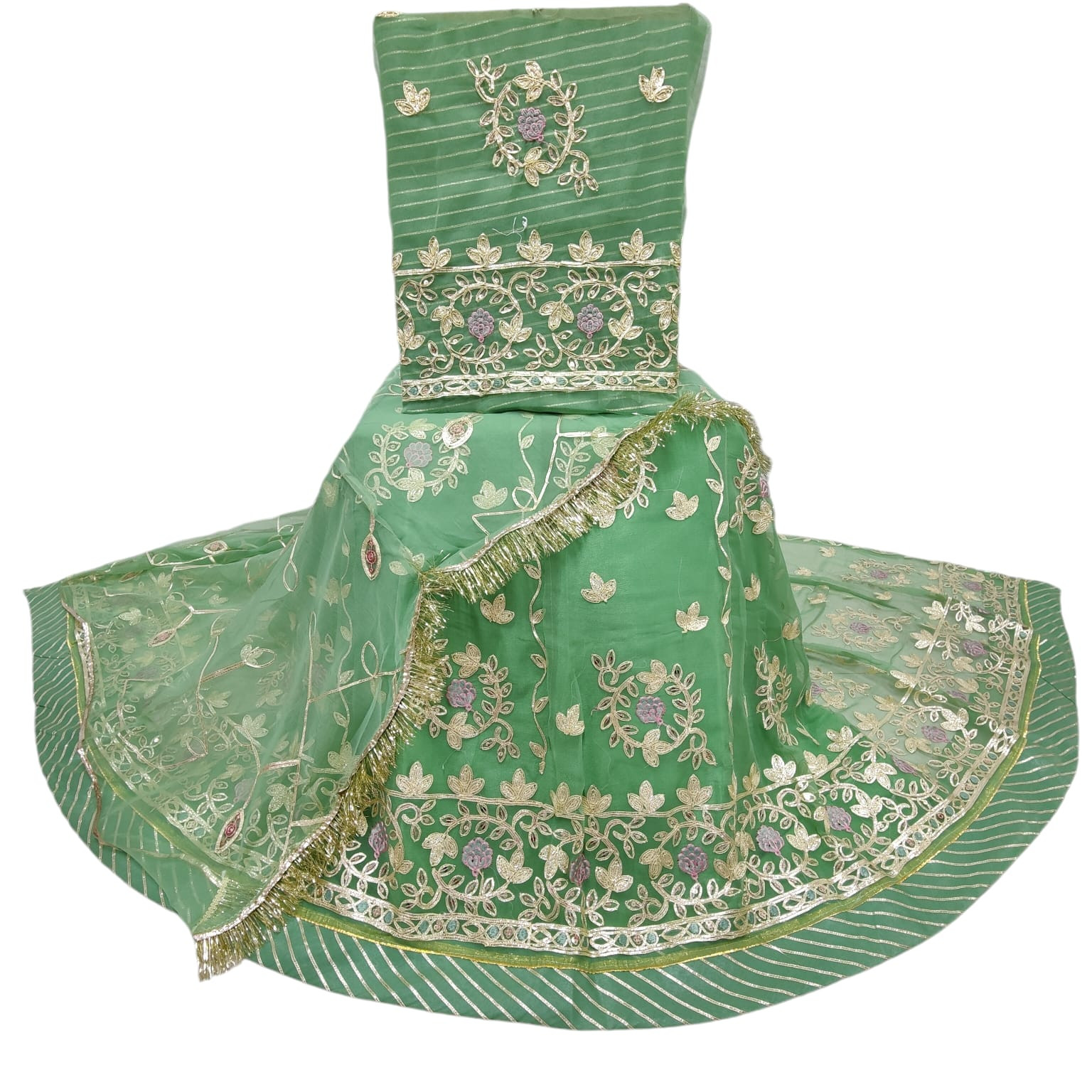Embellished Dupatta: Pair the poshak with a matching or complementary dupatta that features ribbon accents or borders to enhance the outfit.