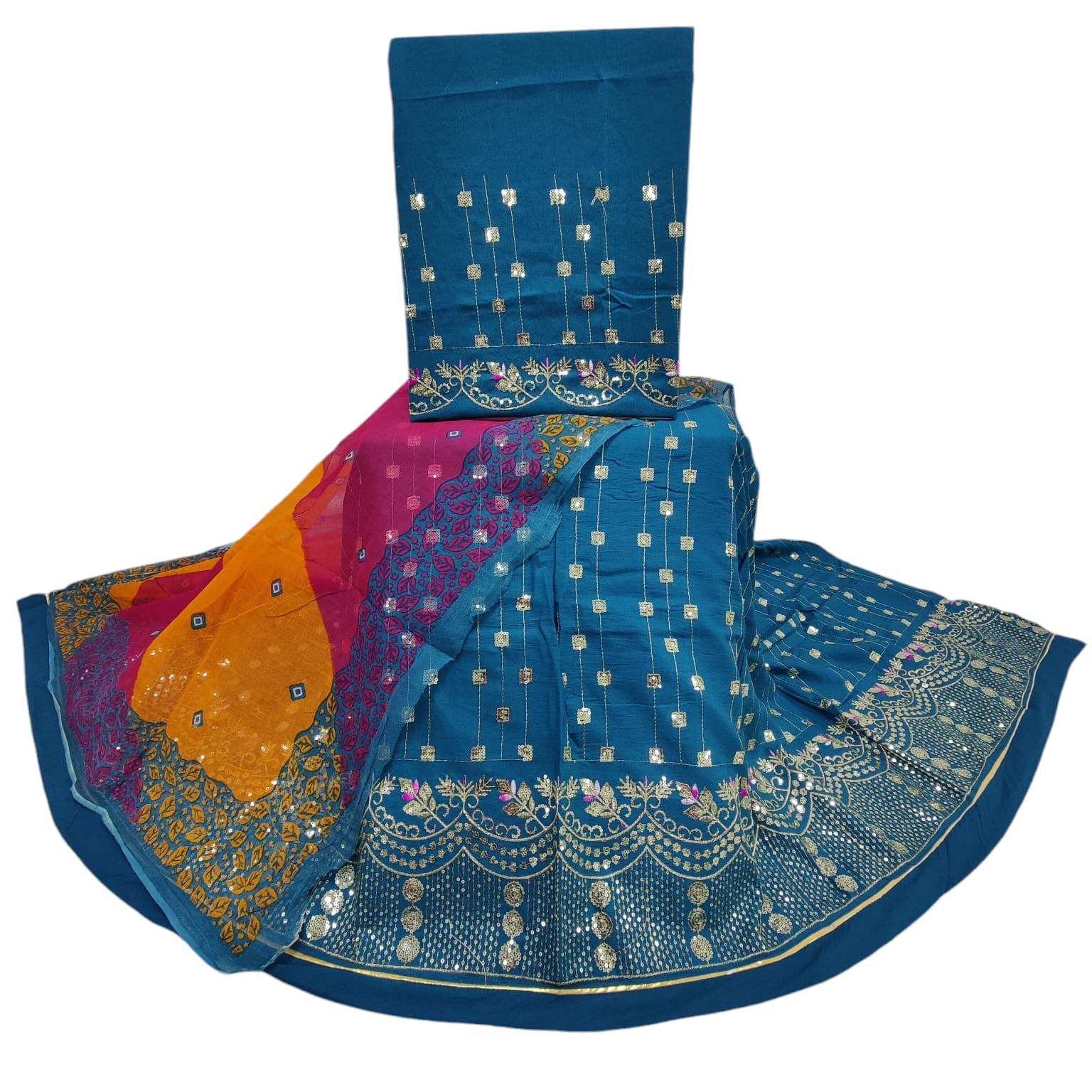 Parampara Cotton Boutique With Zari Kasab Rajputi Suit(Semi Stich)