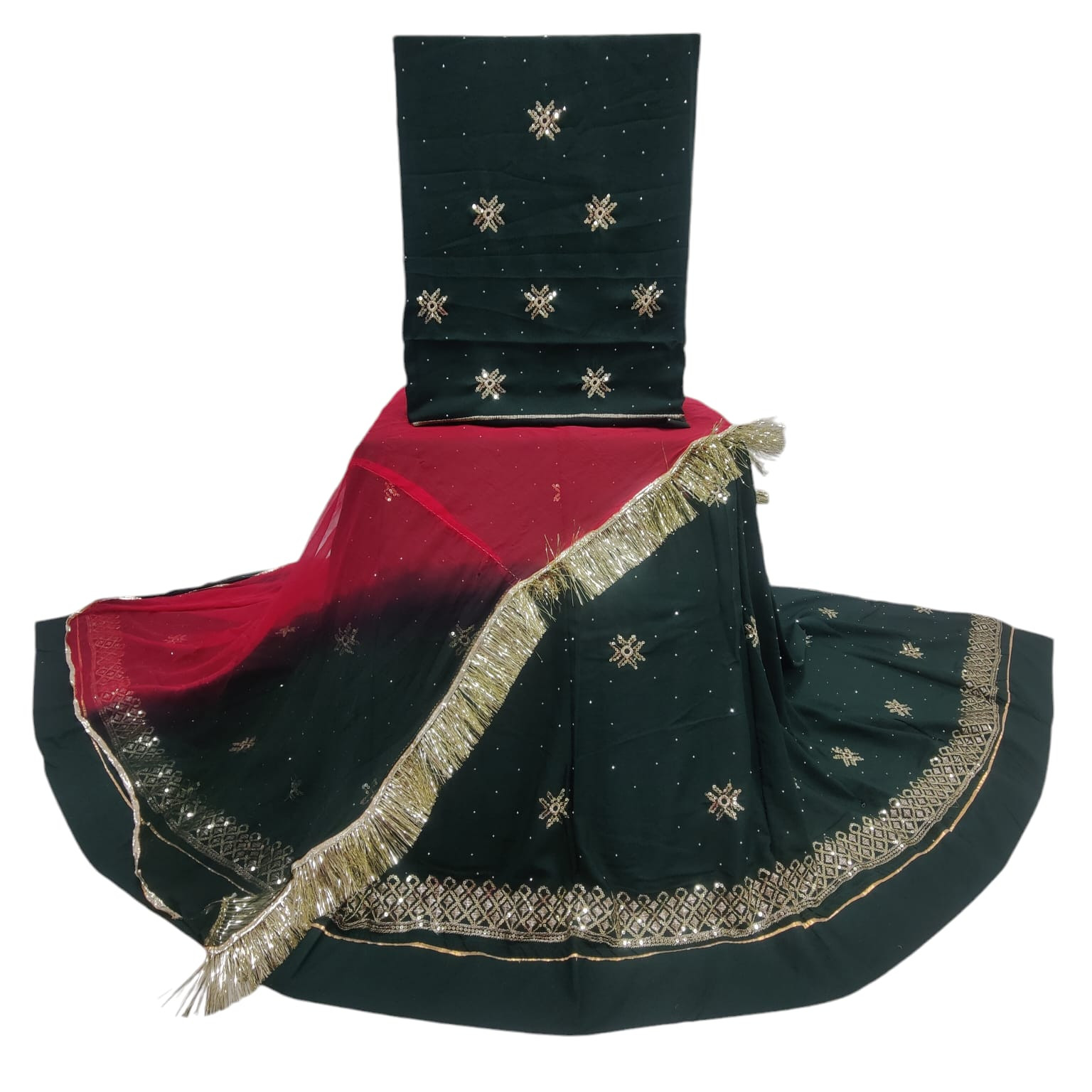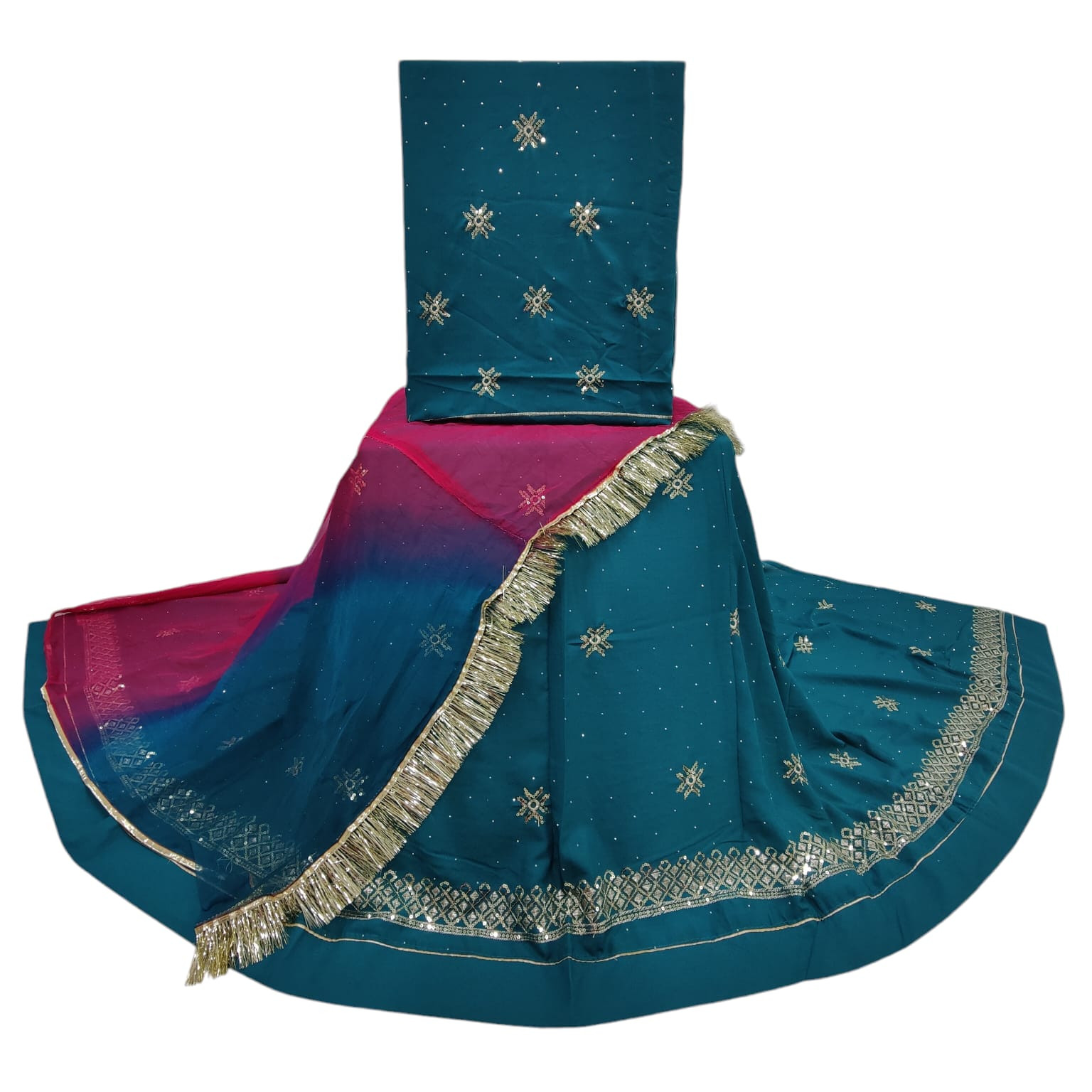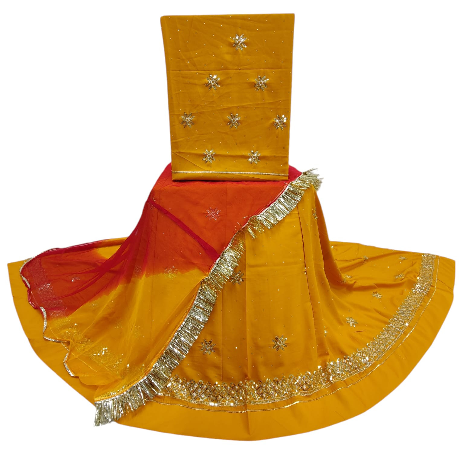 Traditional Embellishments: Often adorned with intricate brocade patterns, zari work, or embroidery, the poshak reflects the artistry of Rajput craftsmanship.