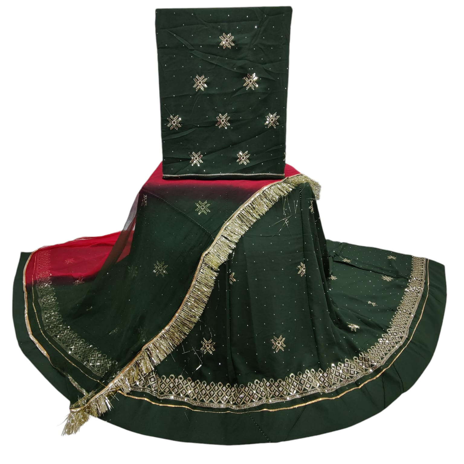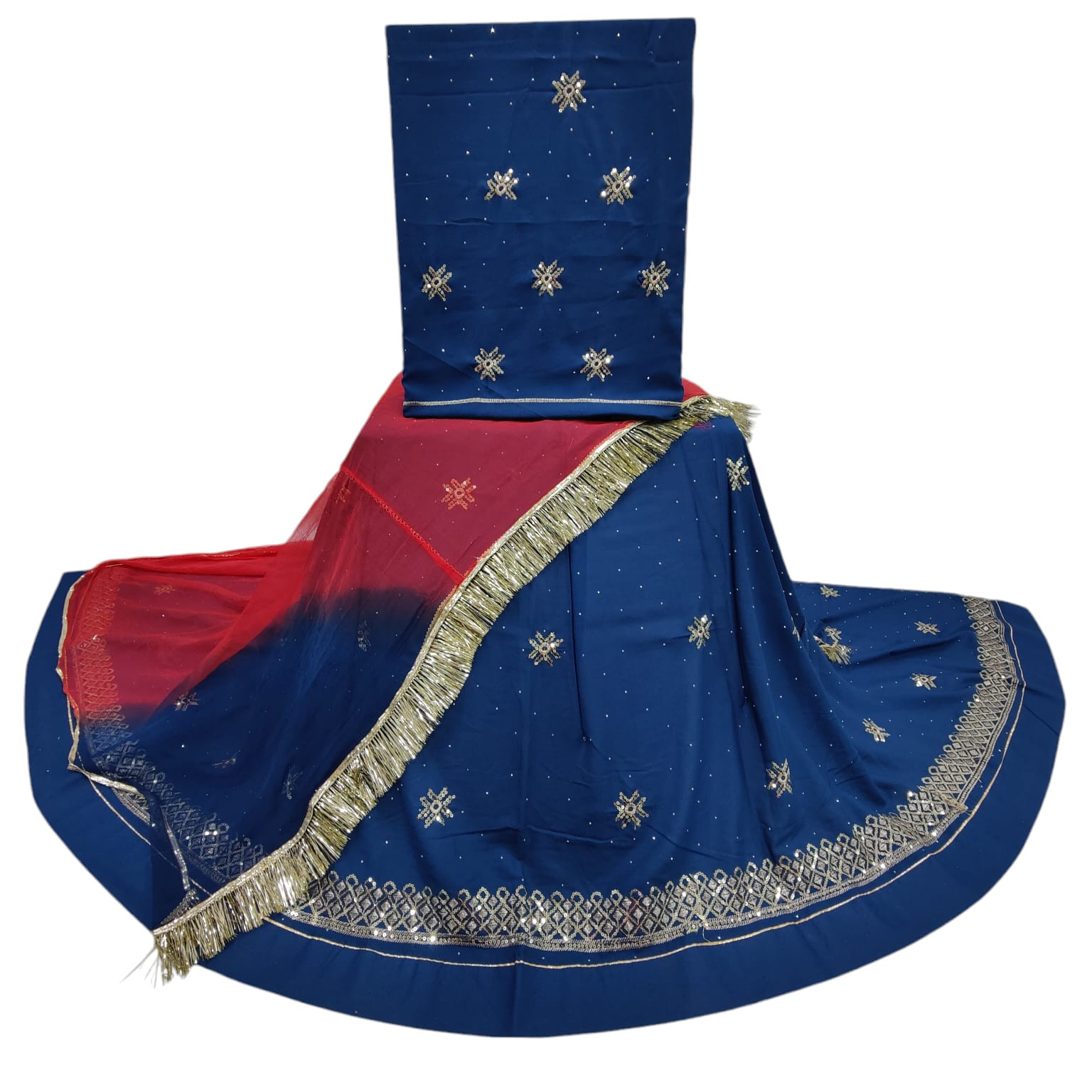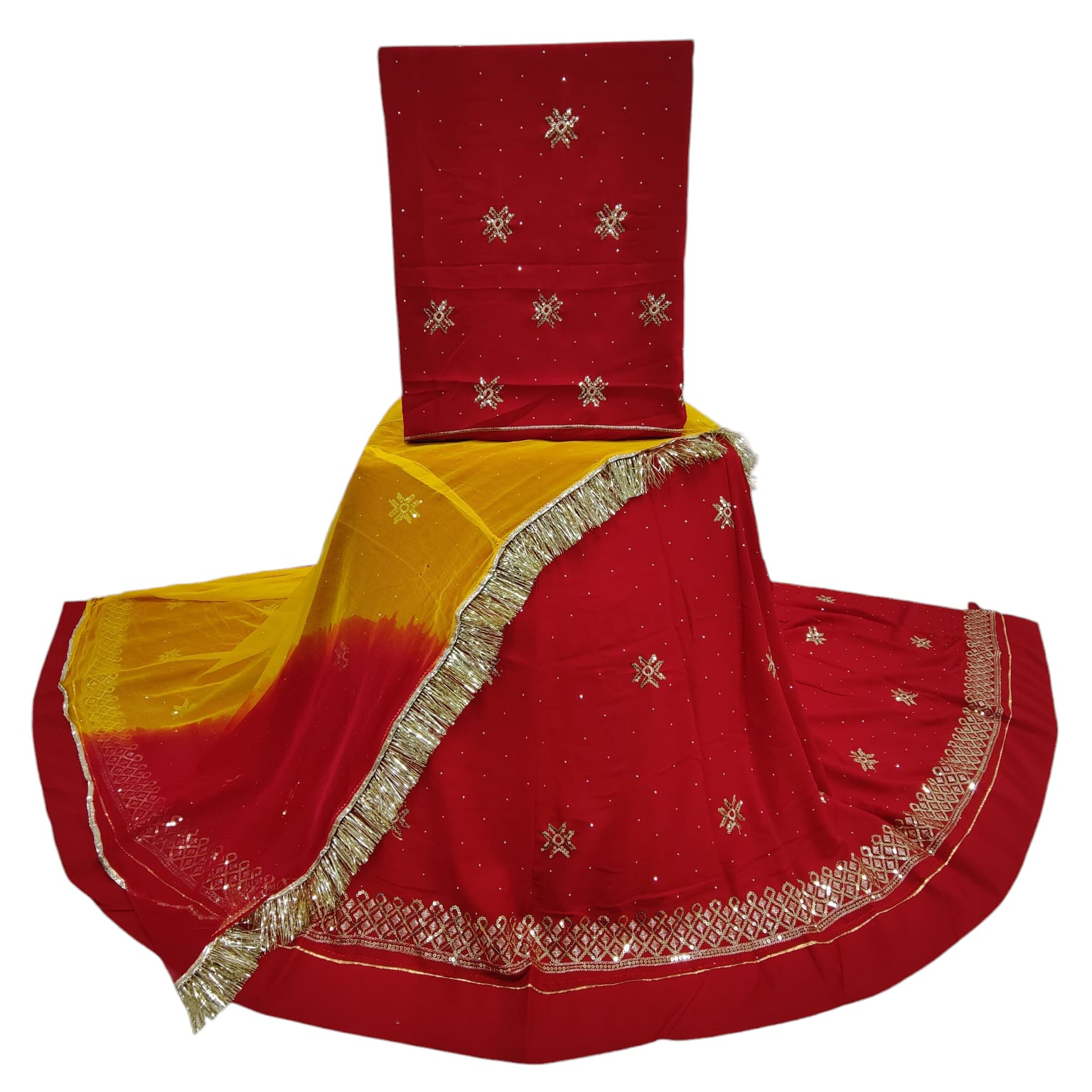 Traditional Embellishments: Often adorned with intricate brocade patterns, zari work, or embroidery, the poshak reflects the artistry of Rajput craftsmanship.
