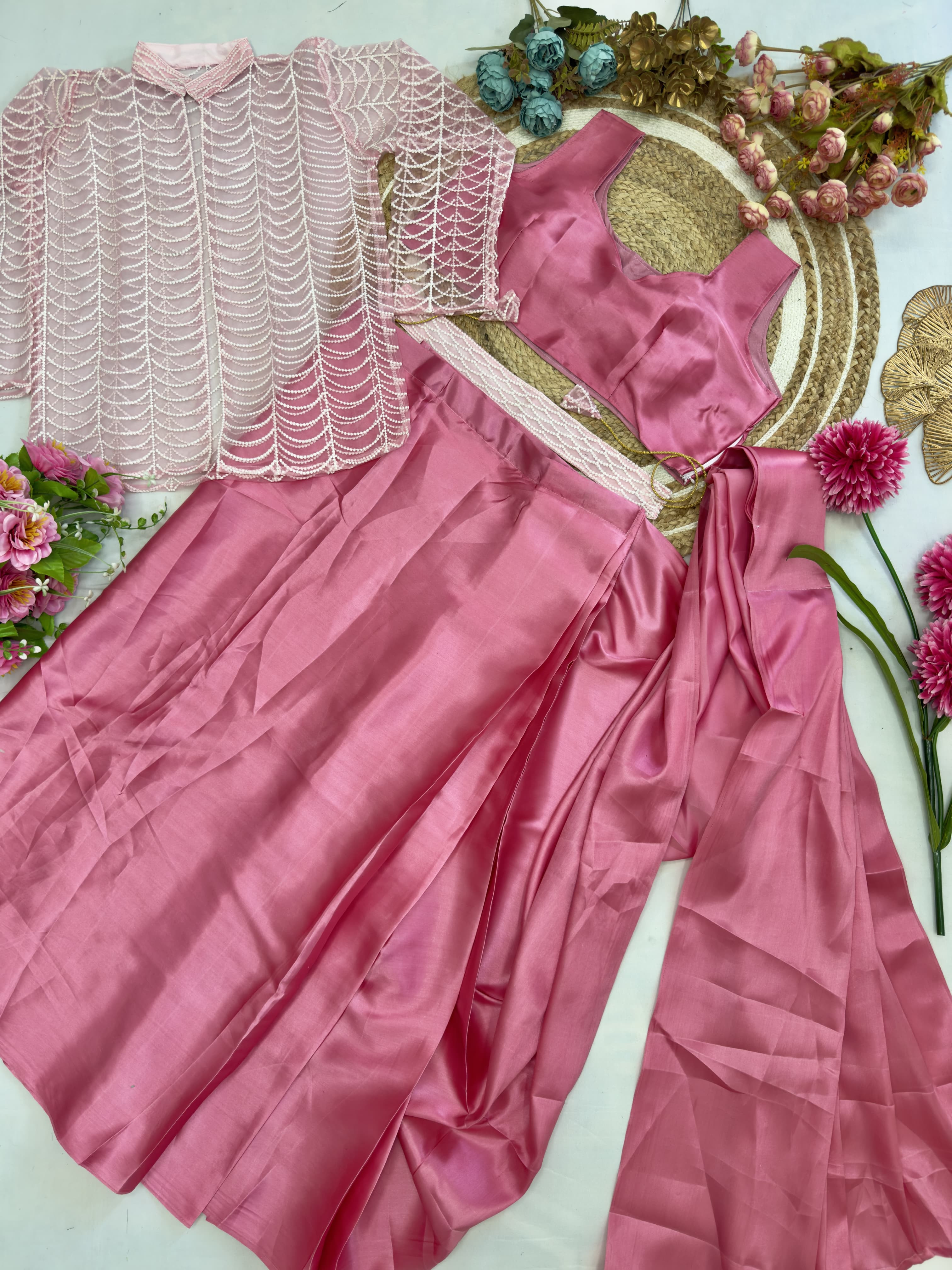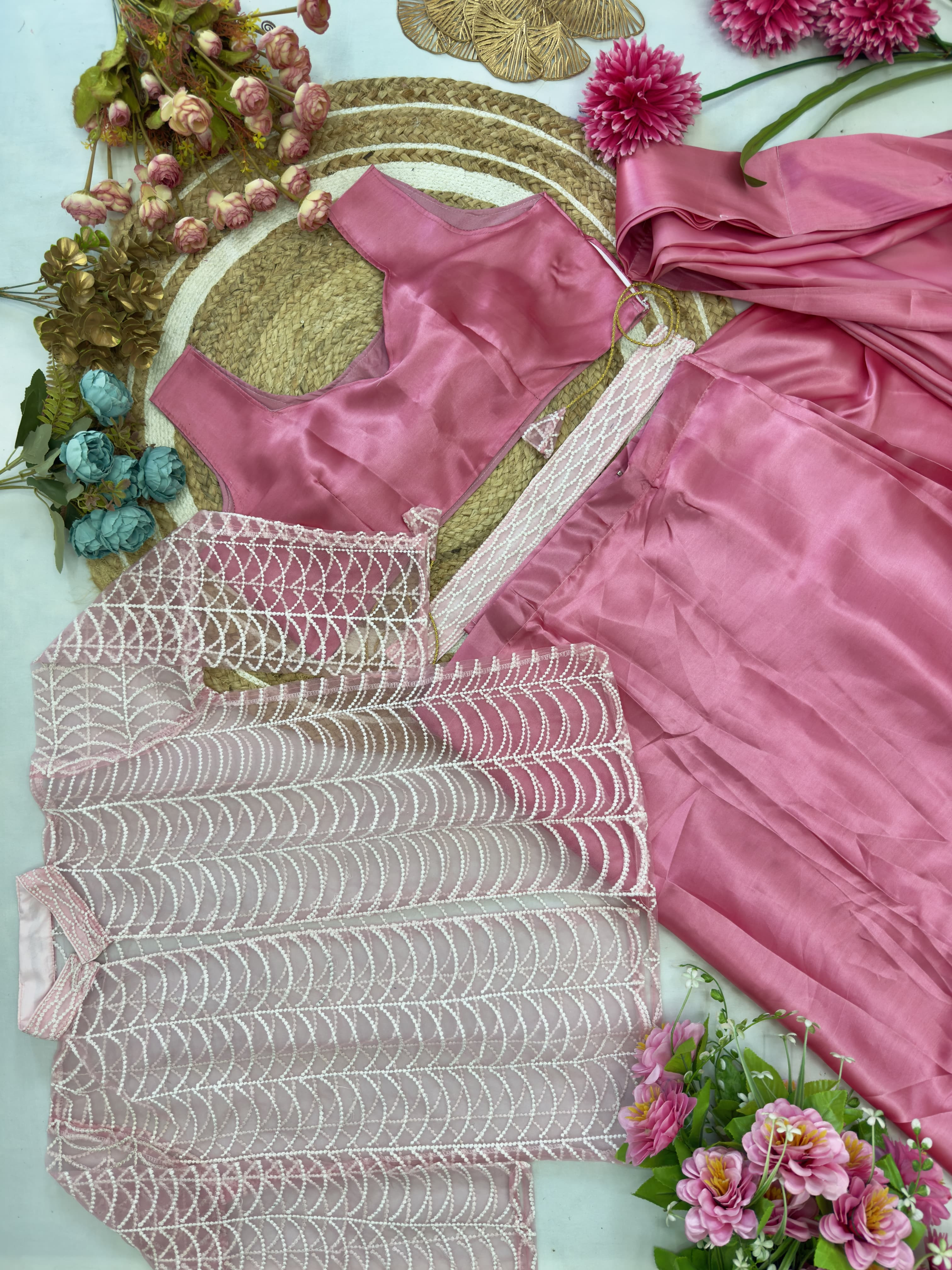 Fabric Heavy Diamond Satin Silk Ready To Wear Saree