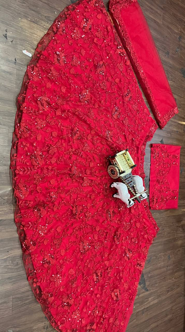 Step into elegance with this opulent lehenga, featuring meticulous sequin embroidery that dazzles across the full 3.5-meter flare. Designed with Cancan & Canvas Patta, it creates a stunning interplay of light and texture, perfect for weddings, festivals, and grand celebrations.