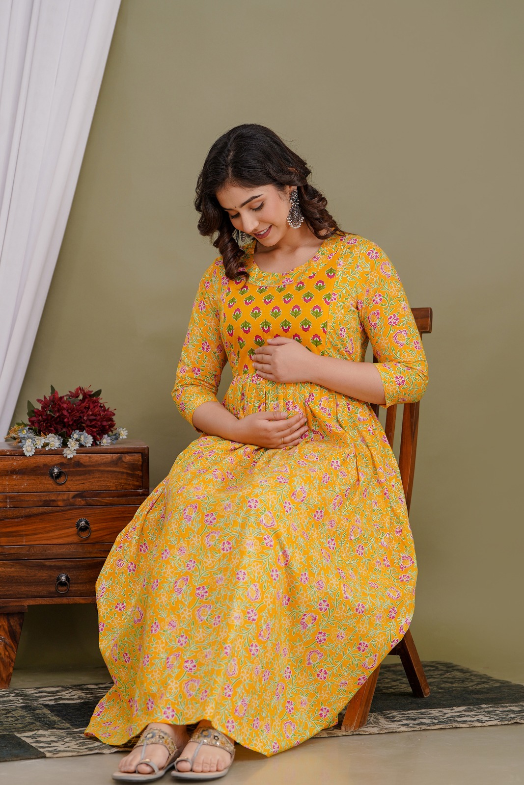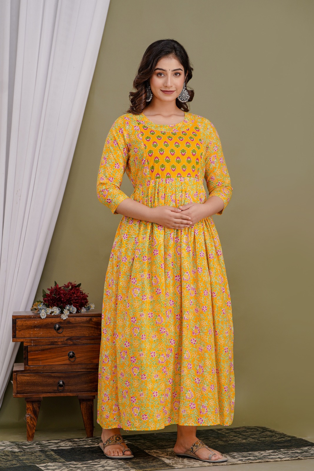 Latest Anarkali Gown Style Western Dress is lightweight, breathable, stretchy & incredibly soft to the skin and keeps you cool all day long. The Feeding top has been designed uniquely plats around tummy area to hide Pre and Post Pregnancy baby bump beautifully.