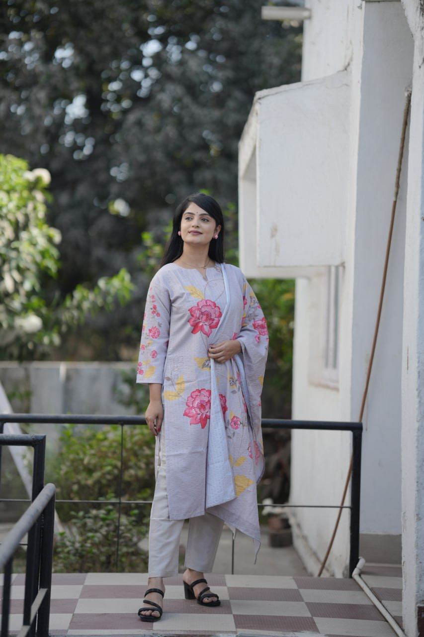 Pakistani Suit with Digital Prints – Maslin Fabric, 3-Piece Set