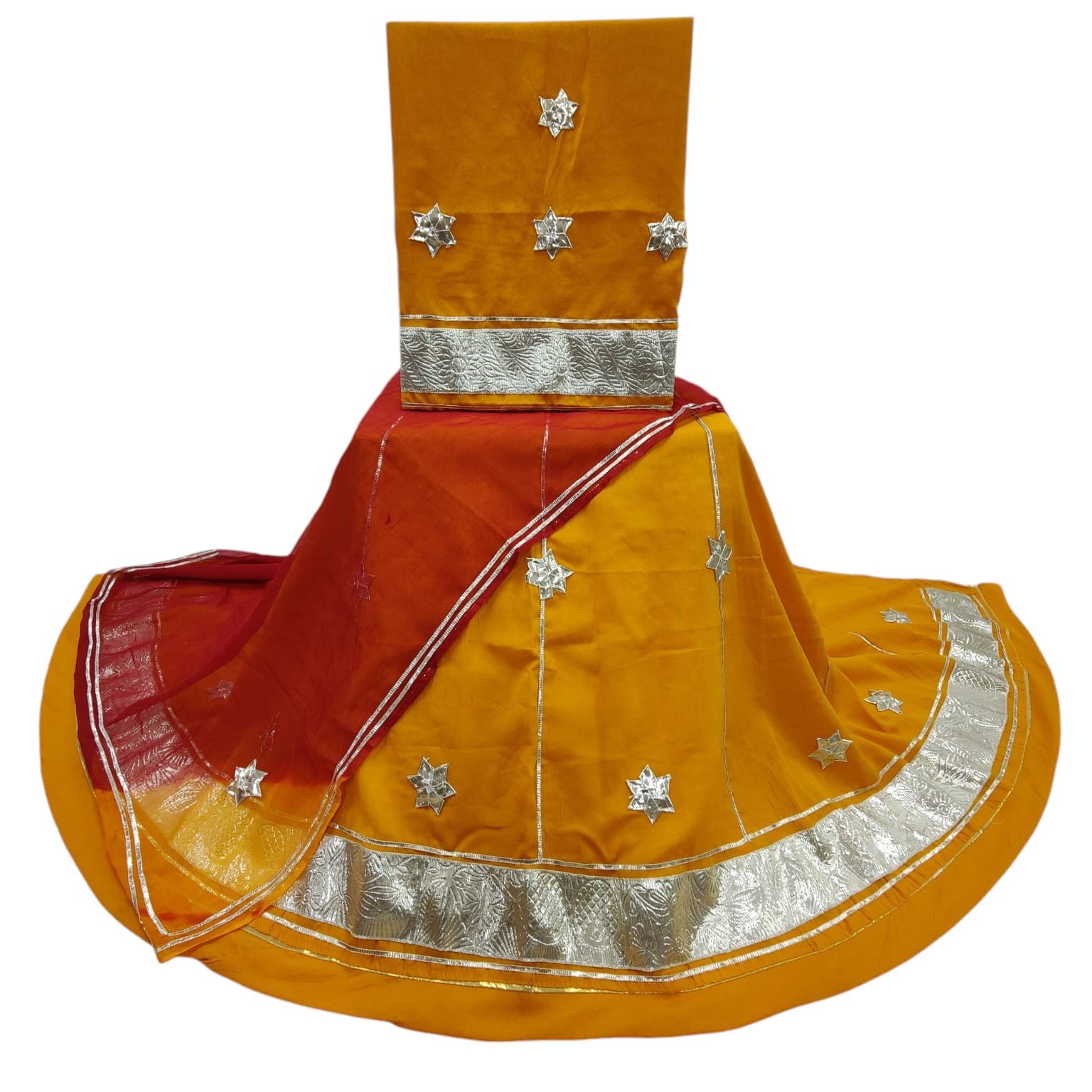 Lehenga: A flared skirt that is often embellished with vibrant colors and intricate patterns, reflecting the artistic heritage of the Rajput community.