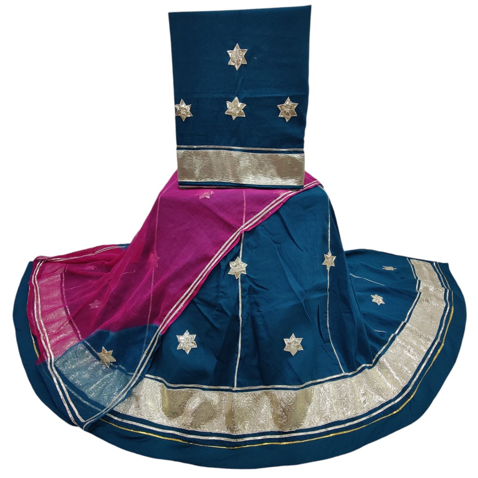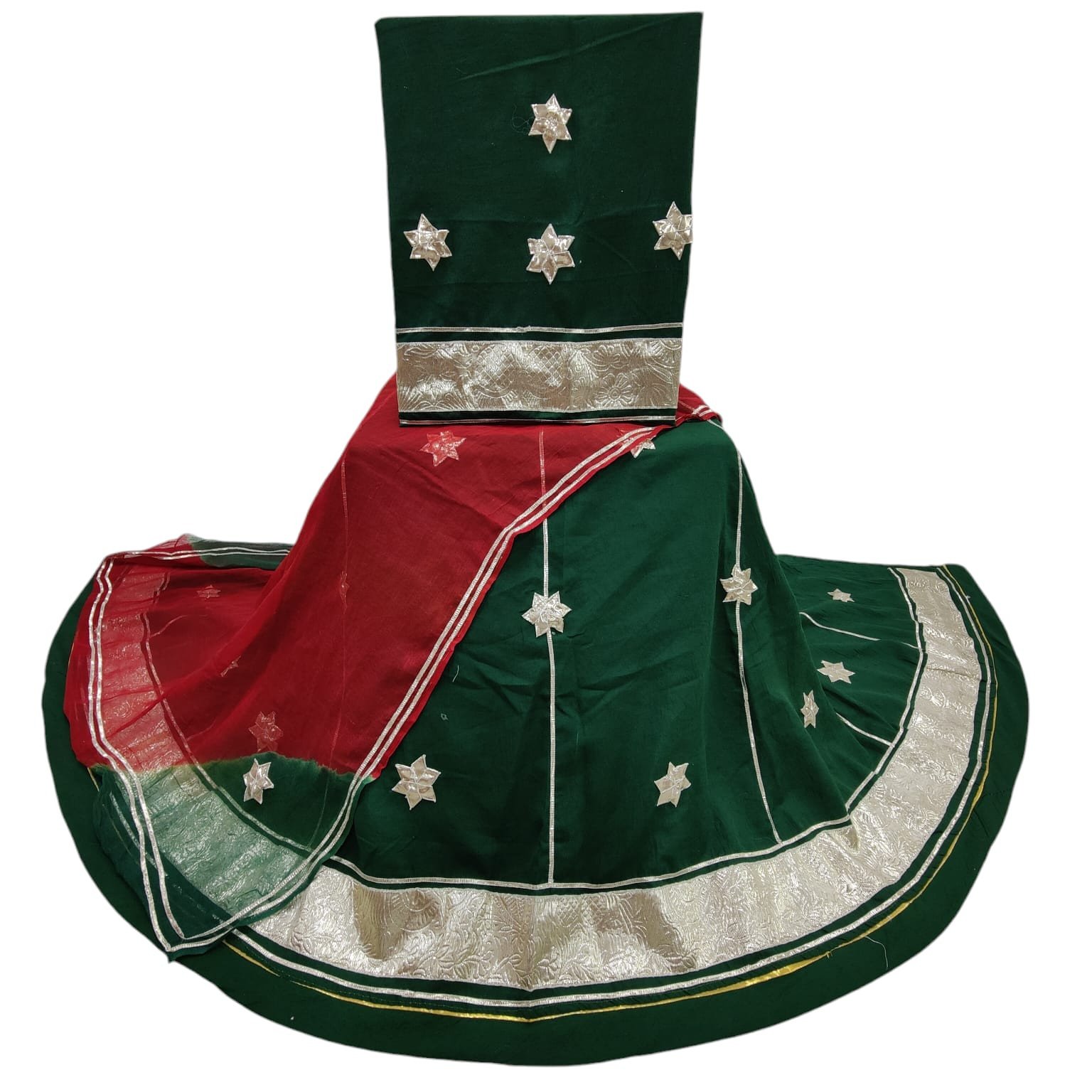 The Parampara cotton Rajputi poshak is a beautiful representation of traditional Rajput attire, crafted from cotton fabric, which makes it comfortable and breathable—ideal for warm climates. This ensemble typically includes: