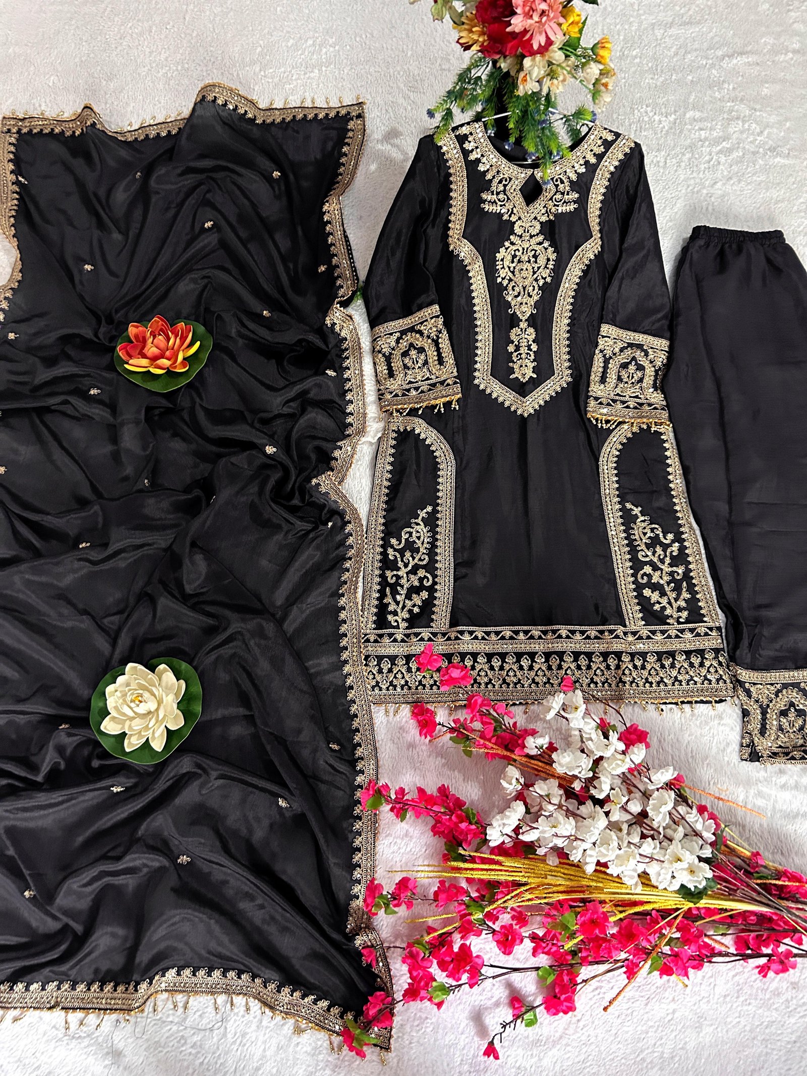 Bottom Fabric:- pure Chinon Silk Fabric (Fully stitched)