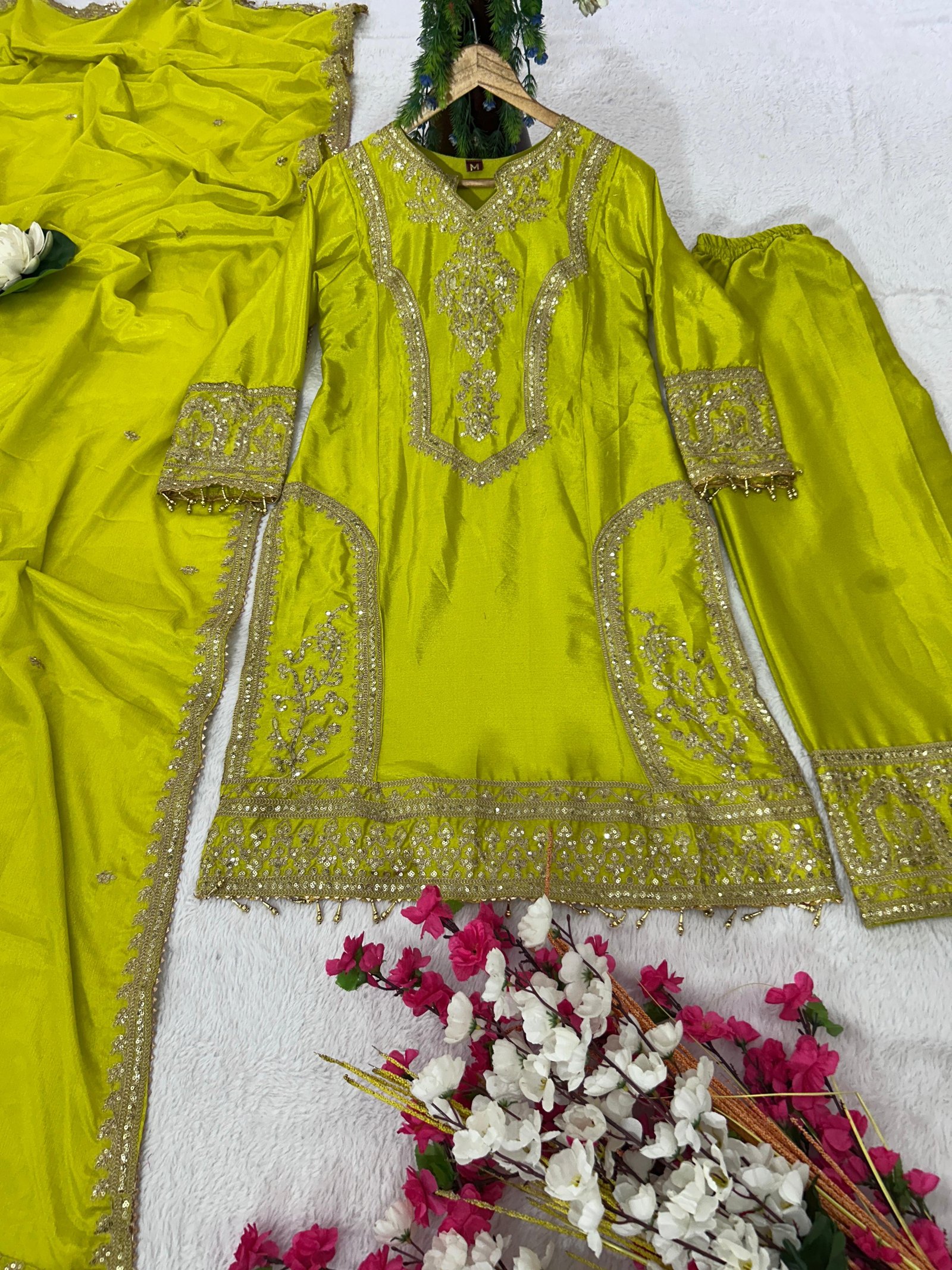 Dupatta Fabric :- Pure Chinon Silk Fabric with Work Lace on Border (dupatta size 2.20 meter)