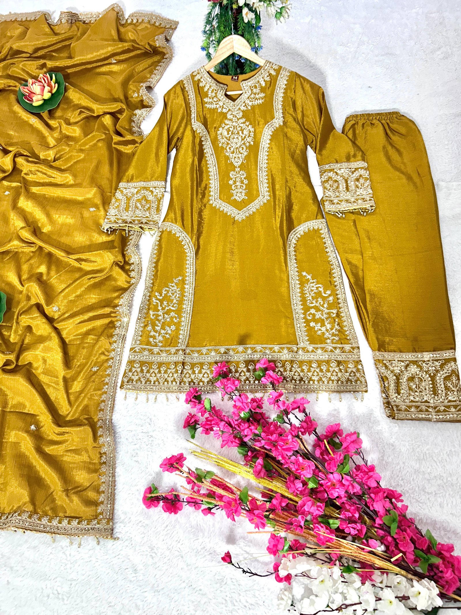 Kurti Fabric :- Pure Chinon Silk Fabric With Micro silk inner (Fully stitched)