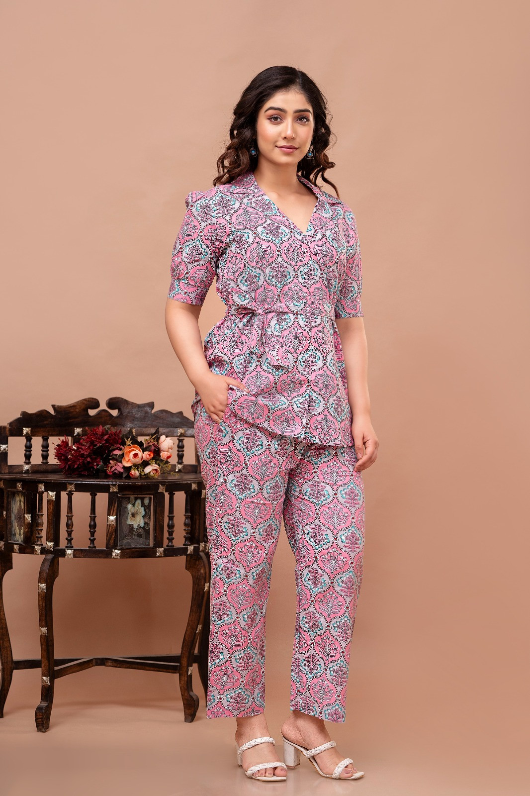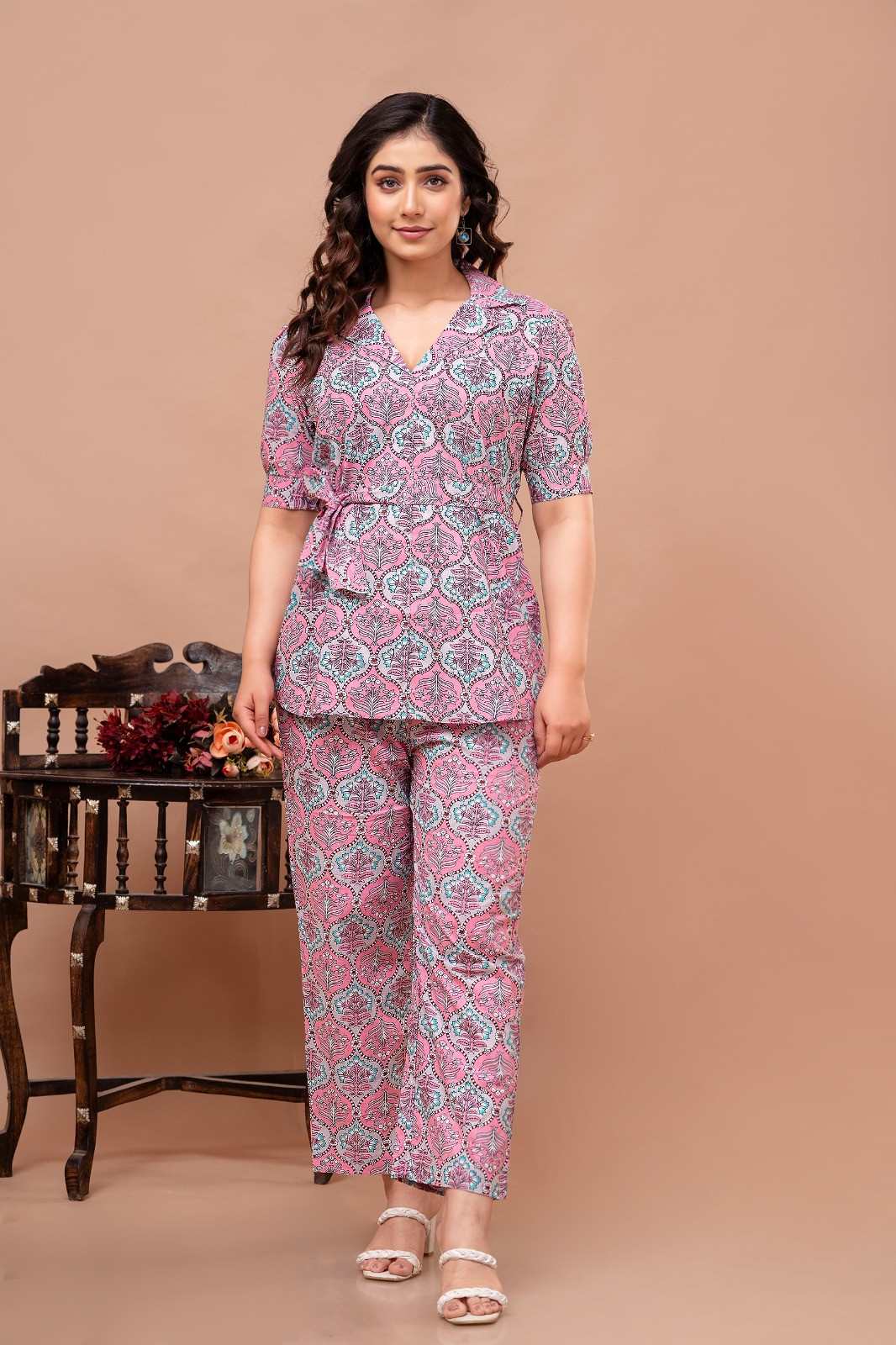 Pink Coloured Women's Pure Cotton Floral Printed Co-ord Sets
