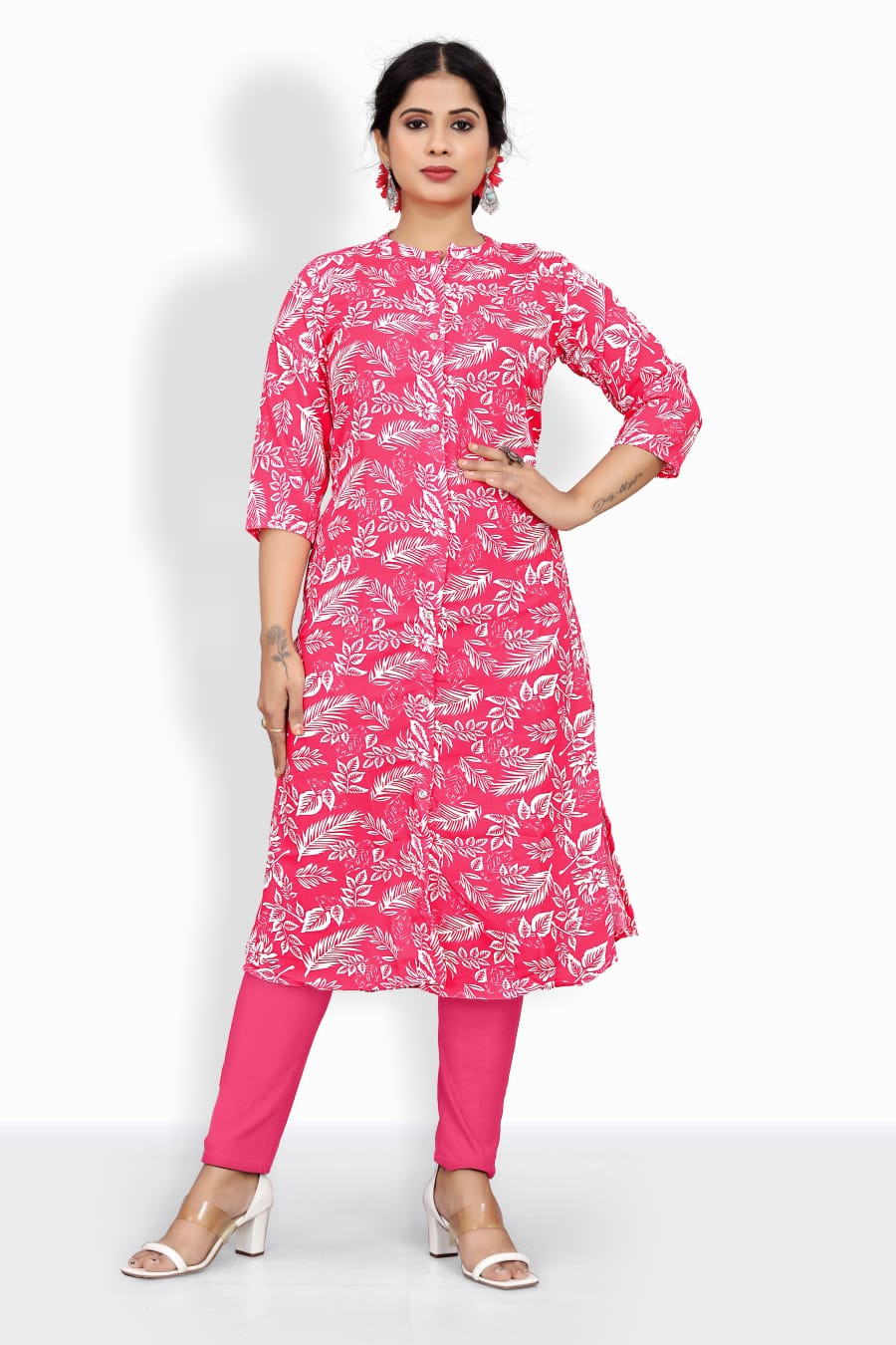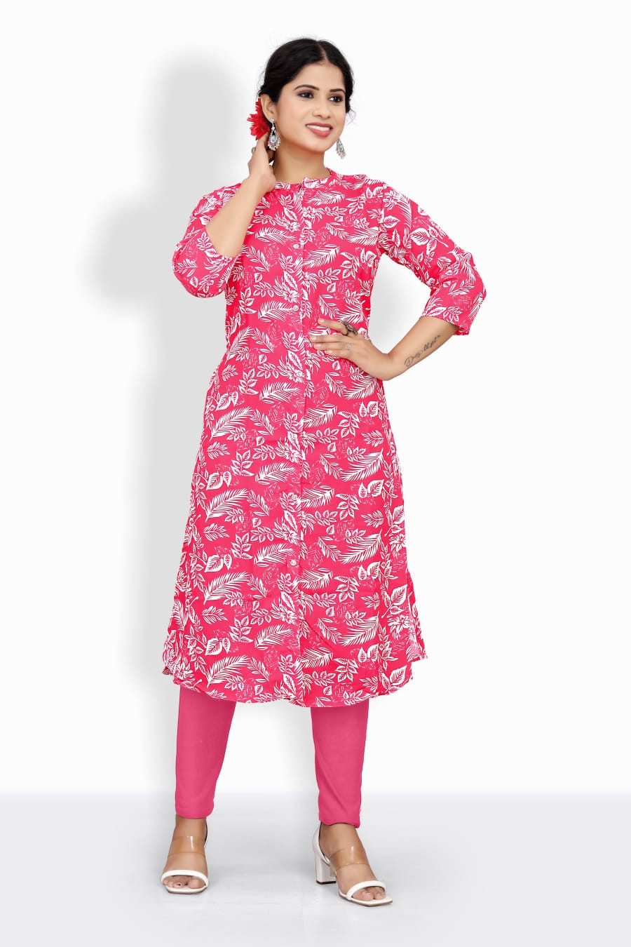 Add a vibrant twist to your ethnic wardrobe with this elegant pink and mehendi green rayon kurti fabric. Made from high-quality rayon, this fabric is soft to the touch, lightweight, and breathable—ensuring all-day comfort with a graceful fall.