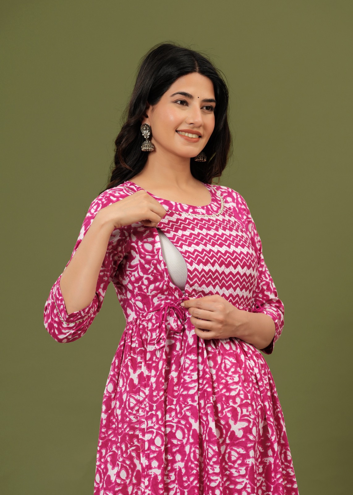 Pink Zigzag Printed Maternity Feeding Kurti