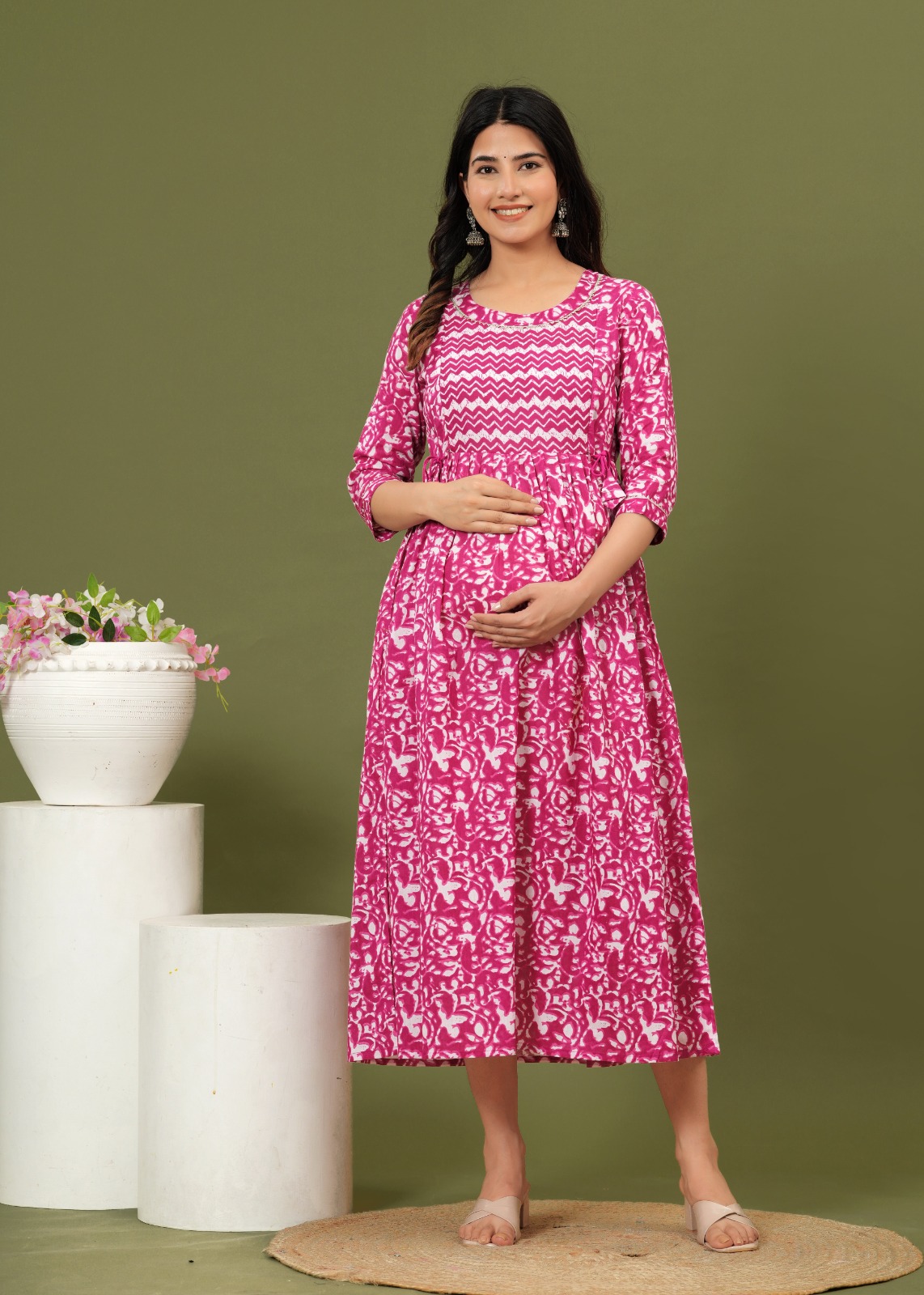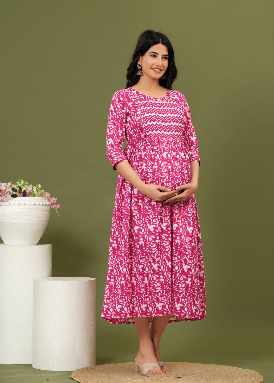 Latest Anarkali Gown Style Western Dress is lightweight, breathable, stretchy & incredibly soft to the skin and keeps you cool all day long. The Feeding top has been designed uniquely plats around tummy area to hide Pre and Post Pregnancy baby bump beautifully.