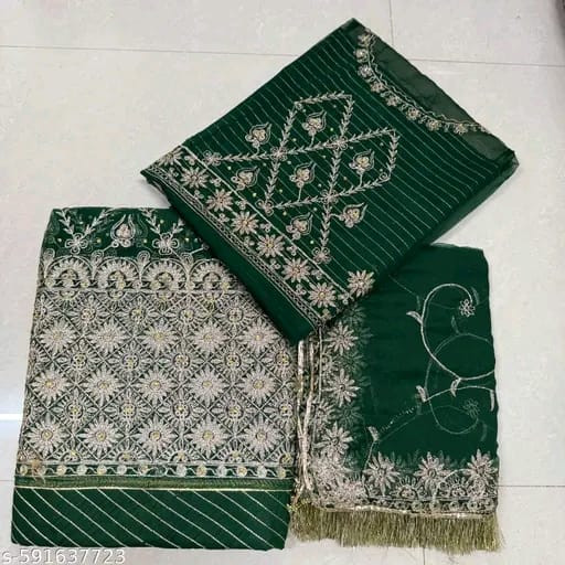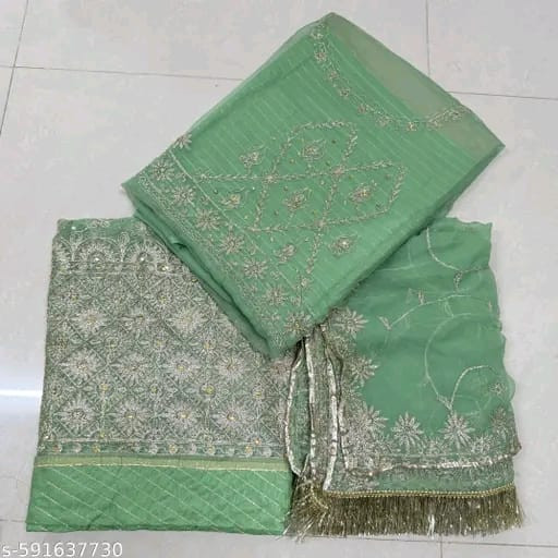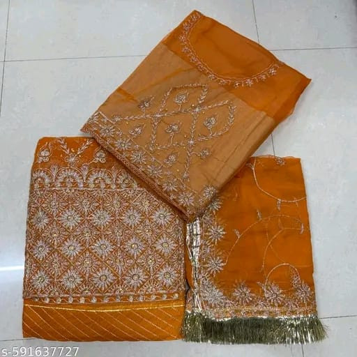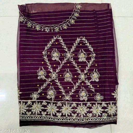 Experience royal elegance with our Premium Designer Poshak, crafted with heavy-quality half-pure fabric for a luxurious drape and unmatched comfort. The poshak features intricate barik fancy chapat zari work, beautifully accented with fancy stone and kundan embellishments that add a rich traditional charm.
