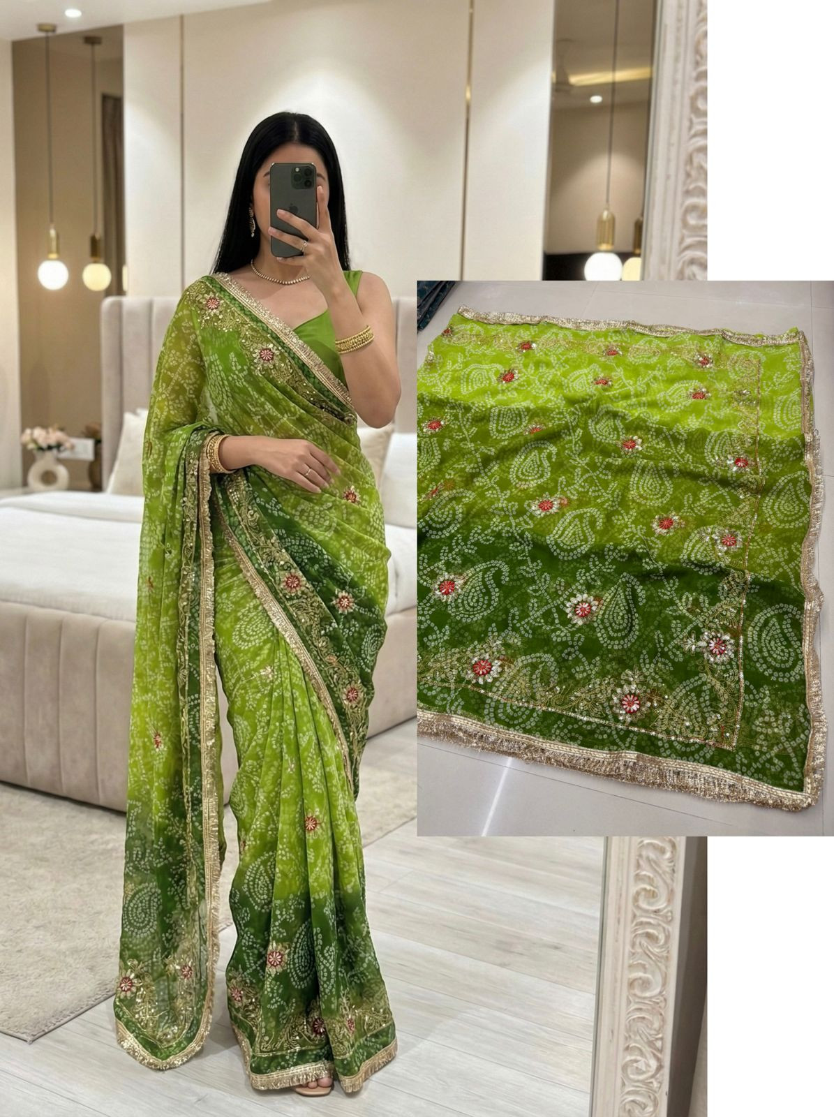Premium Georgette Bhandej Saree -