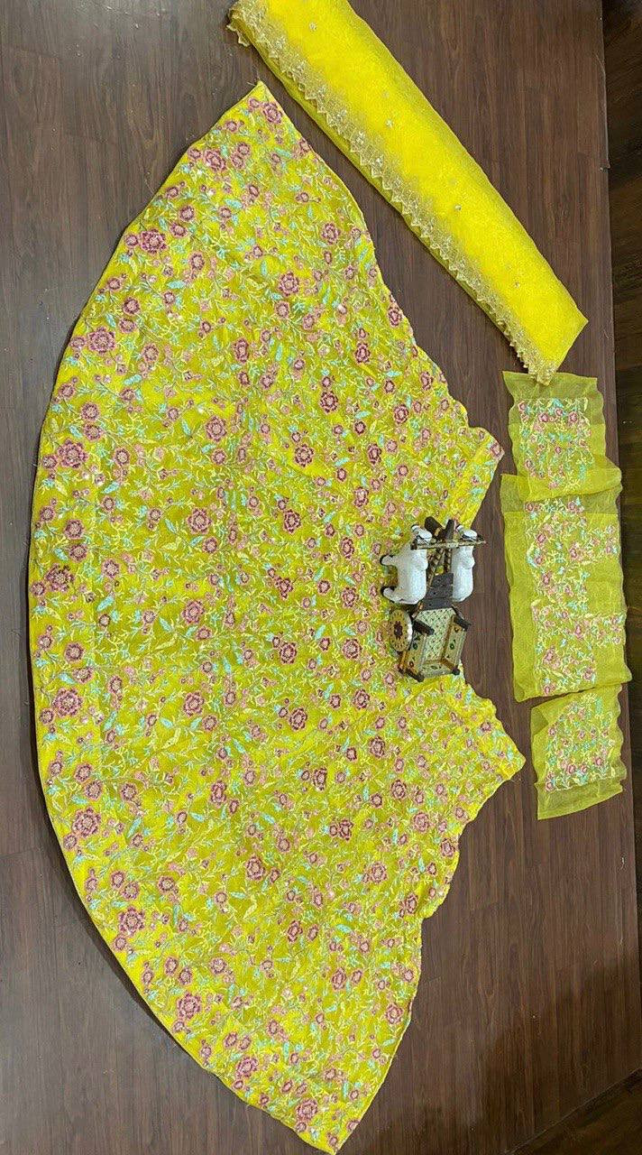 Turn heads with this stunning Organza Silk Embroidered Lehenga, designed to bring elegance and grandeur to your special occasions.
