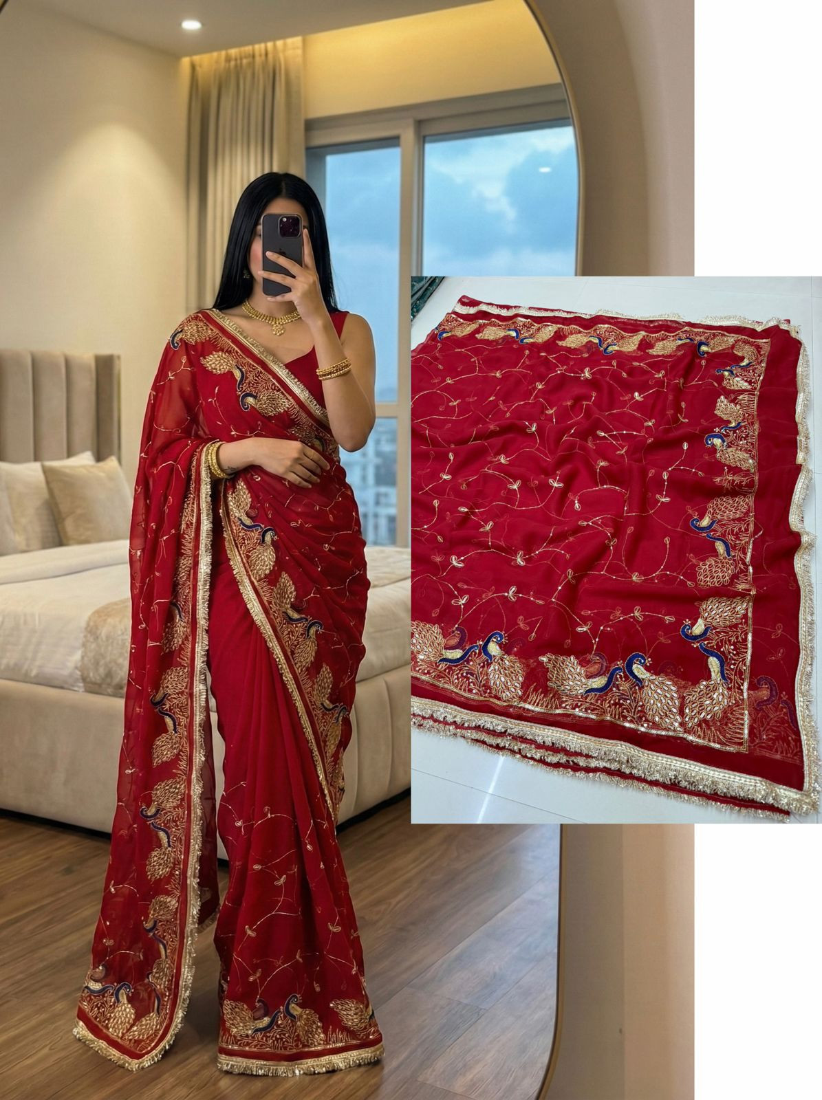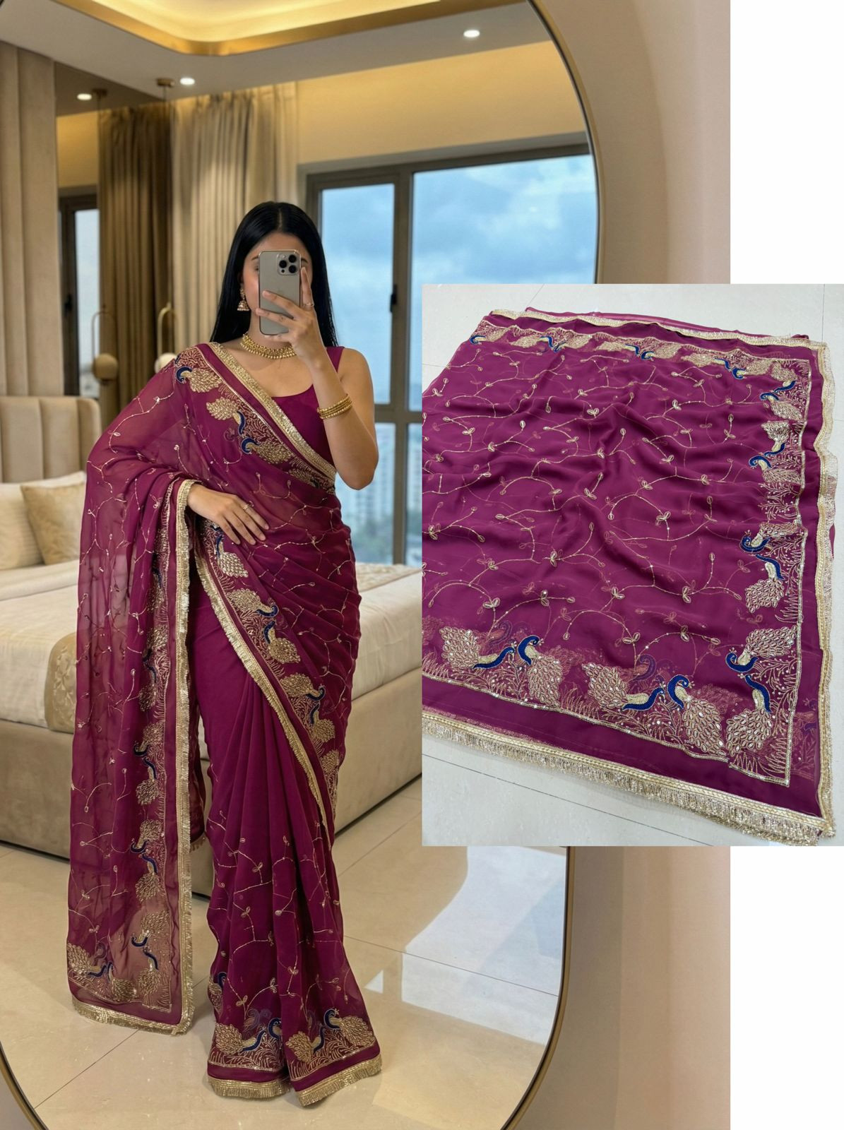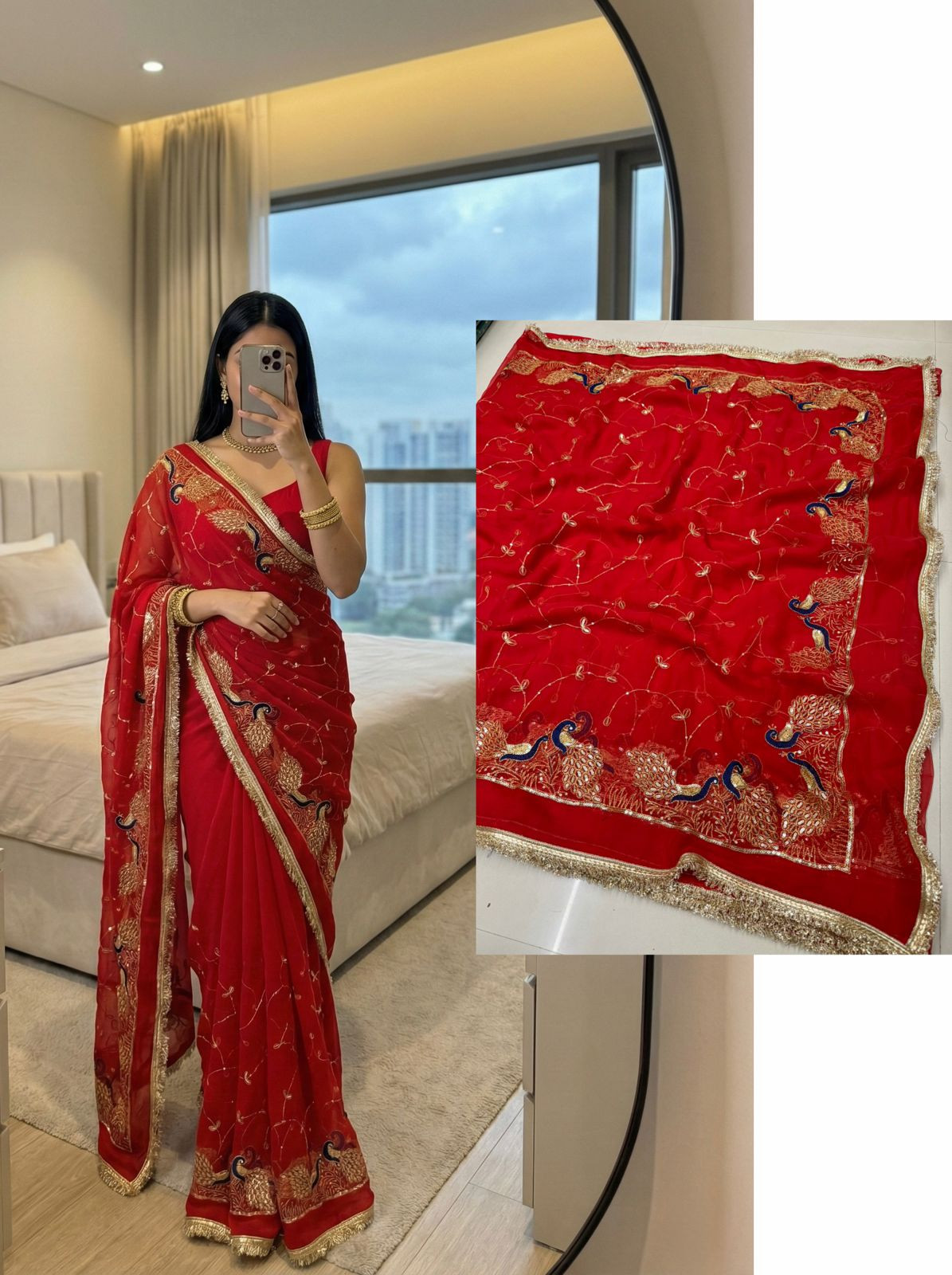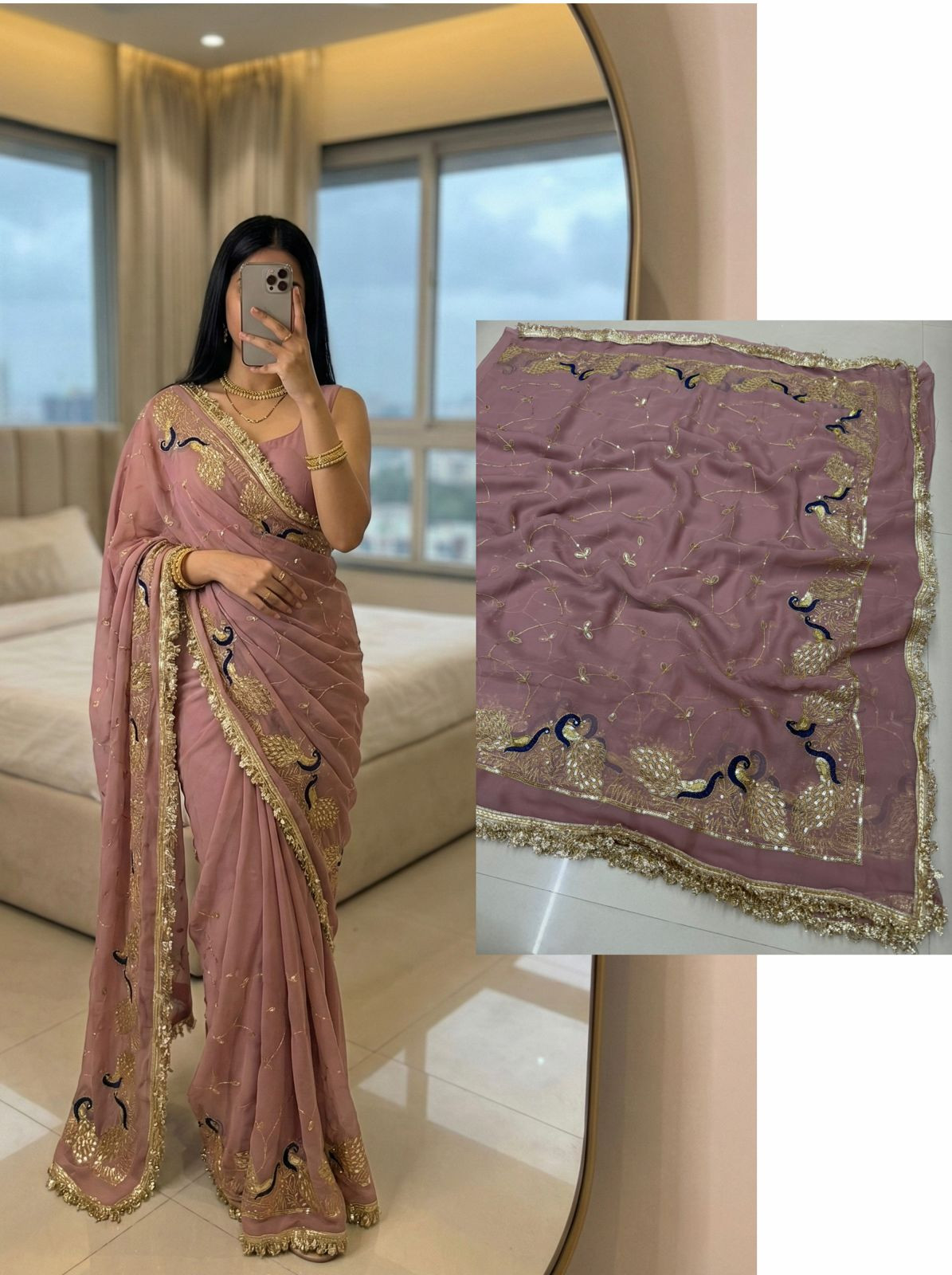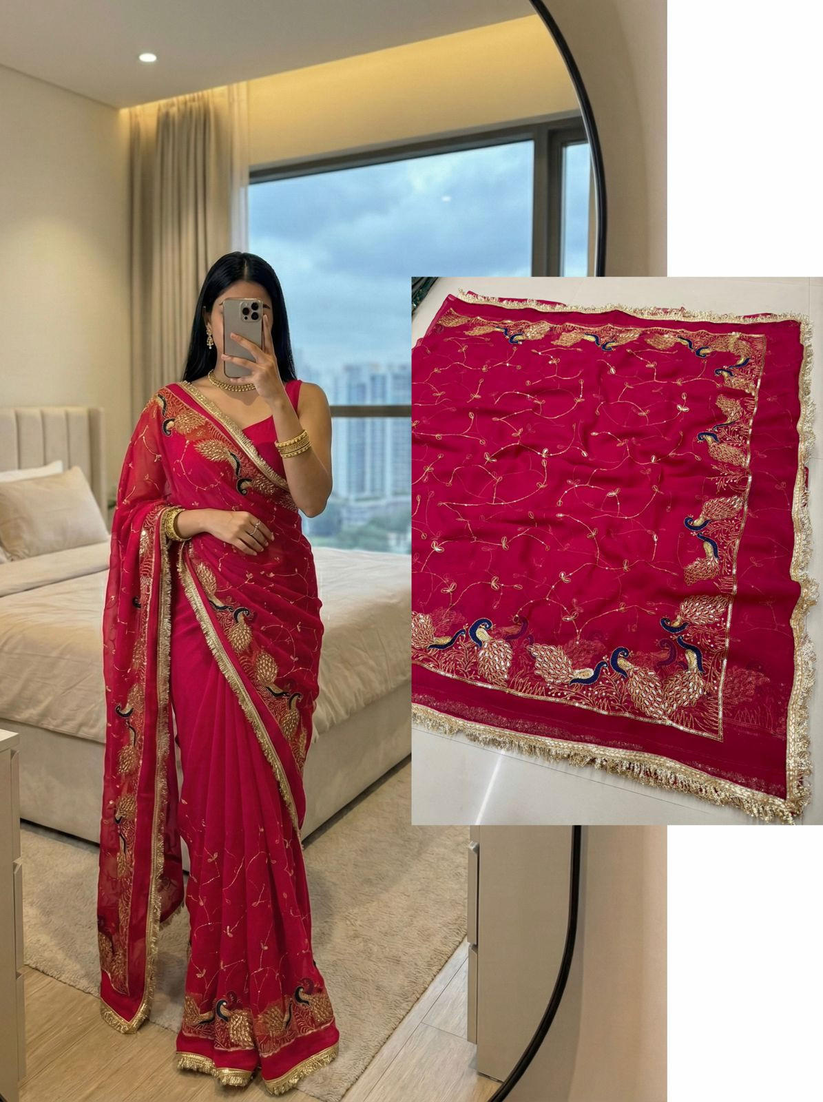 Premium Pecock Embrodred Rajputi Saree with Elegant Sequence Work