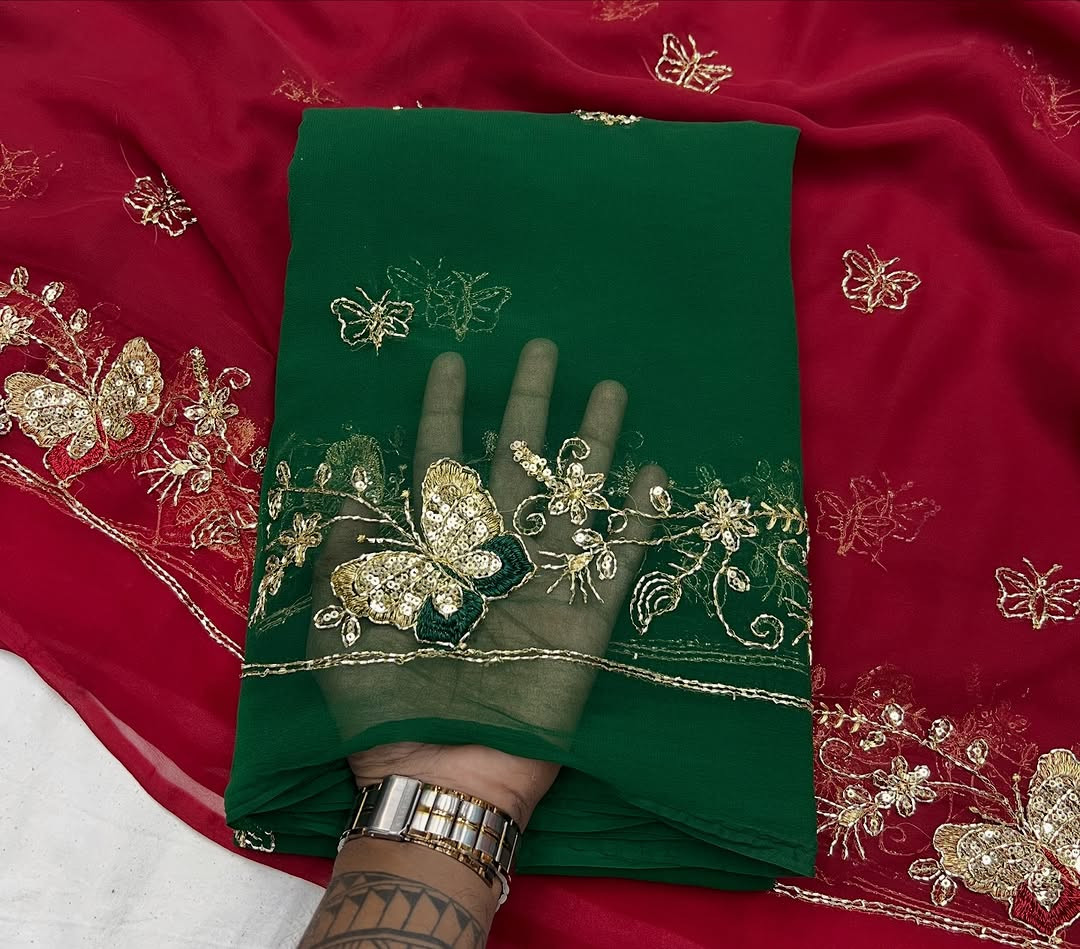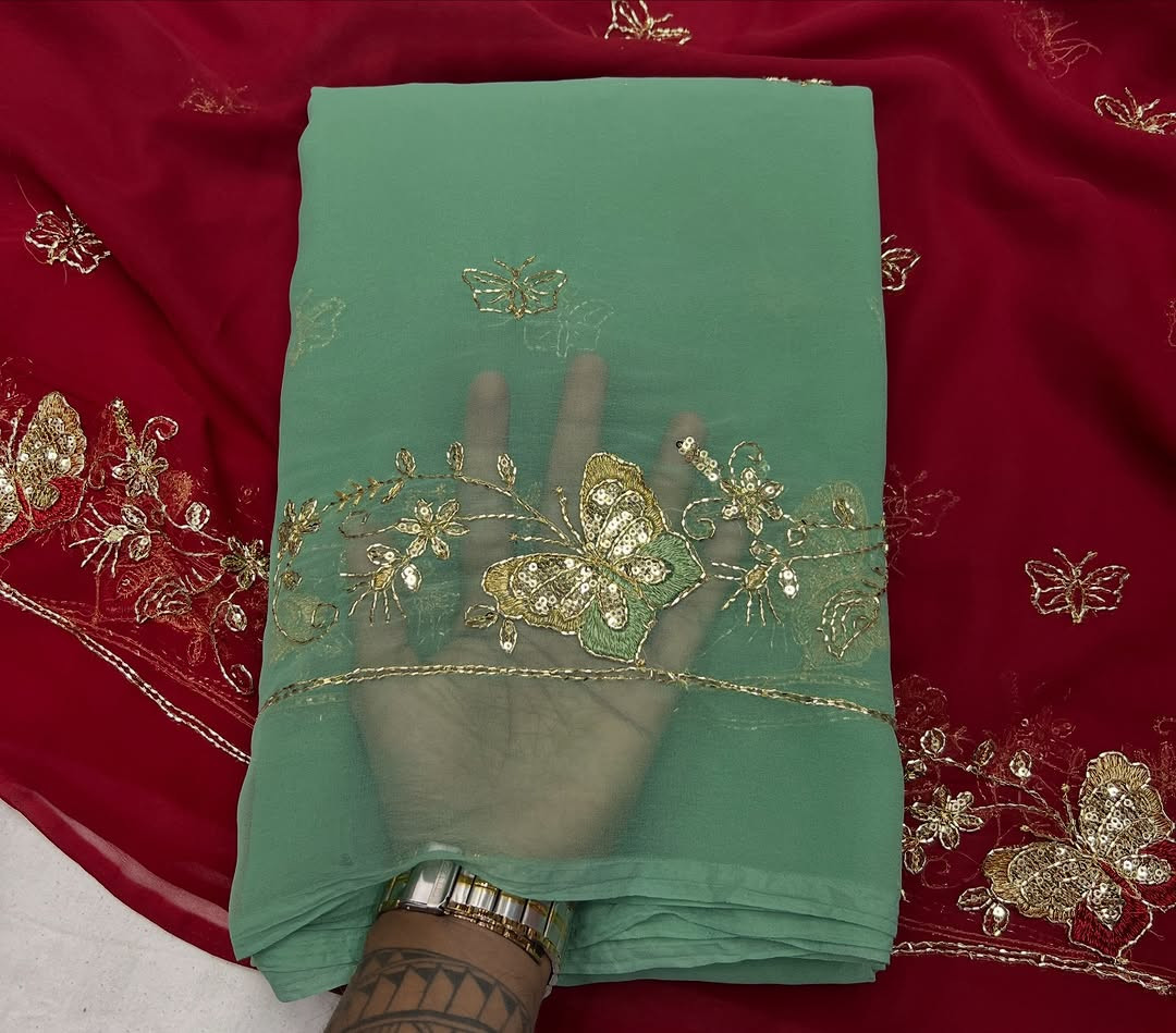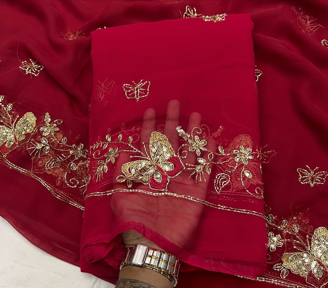 Experience timeless royal elegance with this Premium Rajwadi Style Saree, crafted from Original Thakurji Georgette Fabric. Designed for women who love heritage fashion, this saree features traditional Bhugli handwork that adds rich texture and authentic Rajwadi charm.