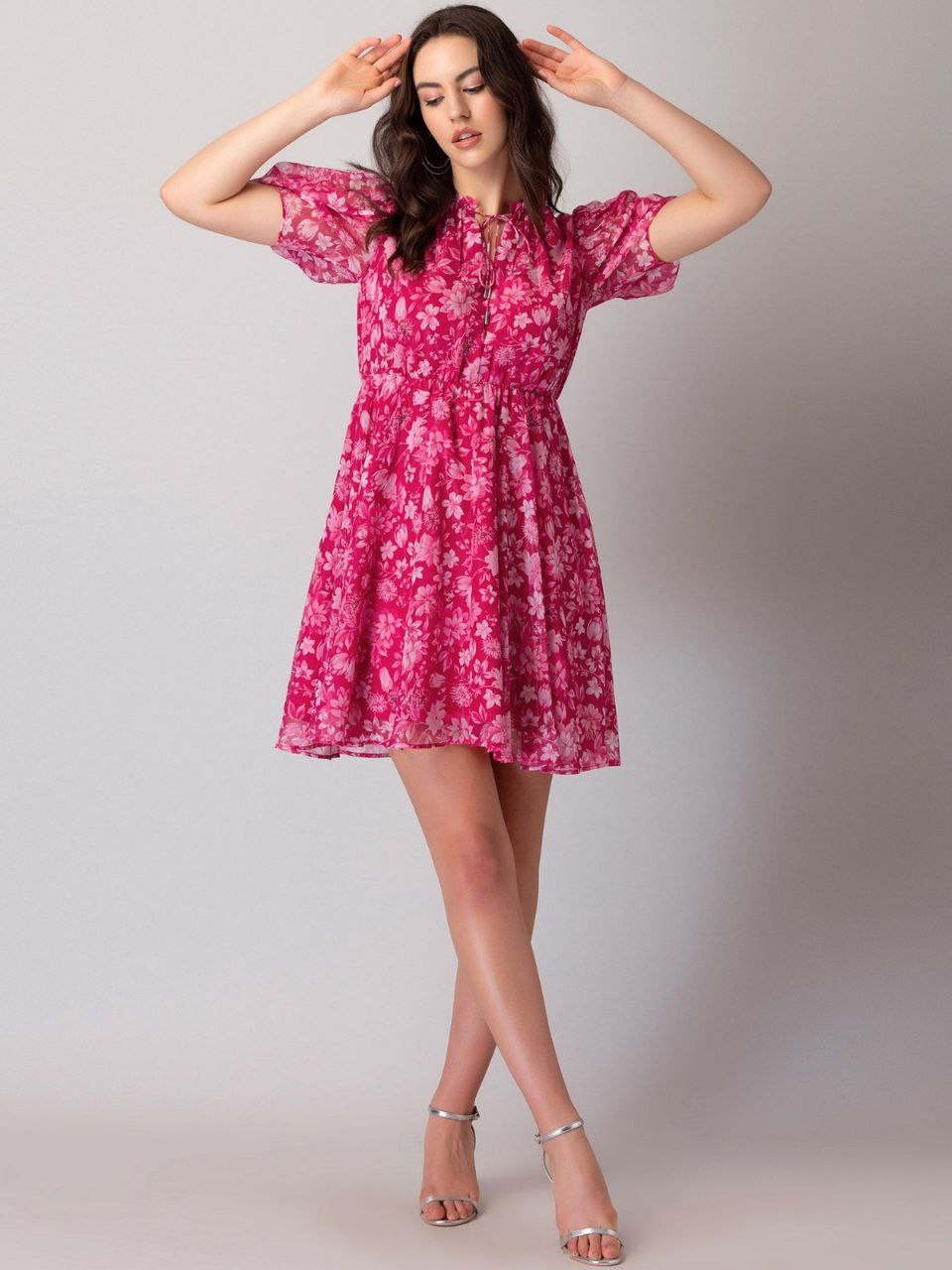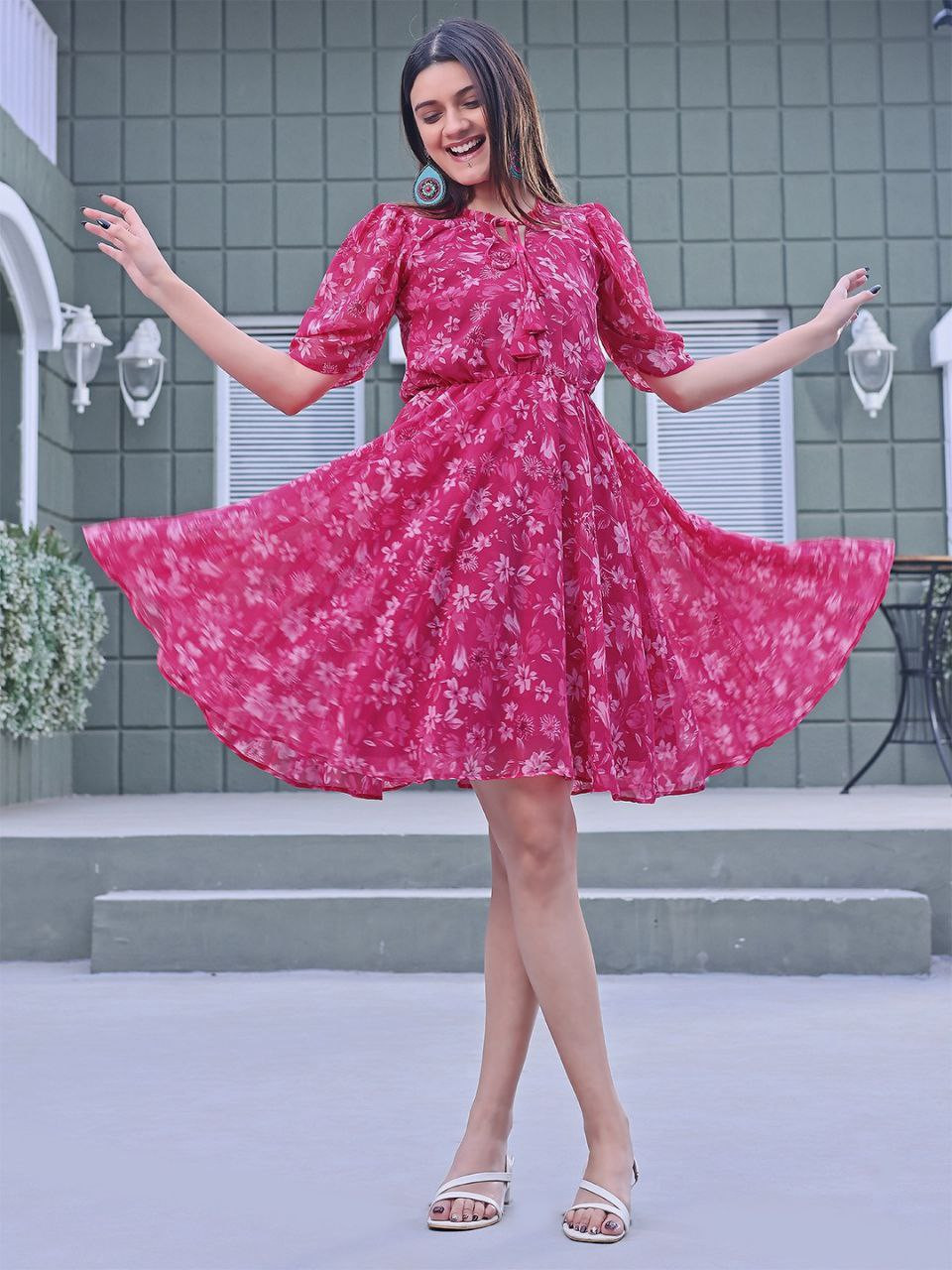 Turn heads with our Premium Western Short Dress made from high-quality Georgette with vibrant Digital Prints. Designed in a flattering Fit & Flared silhouette, this dress features a beautiful V-neck, trendy Flared Short Sleeves, and comes with a soft Row Silk lining for all-day comfort.