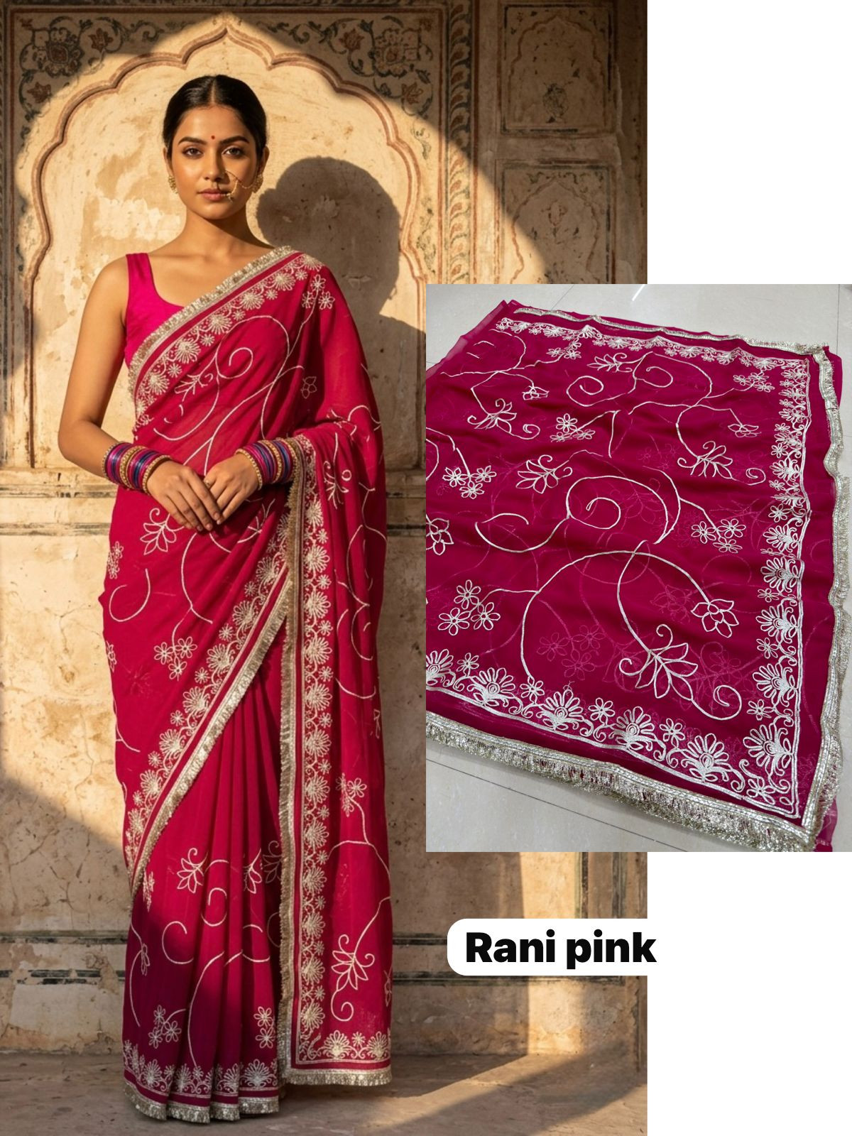 Indulge in the opulent charm of the Premium Royal Georgette Darbari Saree, a masterpiece crafted from an exquisite Indian silk blend. This saree drapes beautifully, offering a luxurious feel against your skin that speaks volumes of its premium quality. The rich georgette fabric, interwoven with fine silk threads, creates a subtle sheen that catches the light with every movement, making you the undeniable center of attention at any event. Its intricate Darbari-inspired motifs, meticulously woven, add a touch of regal heritage and timeless elegance, ensuring you stand out with sophisticated grace.