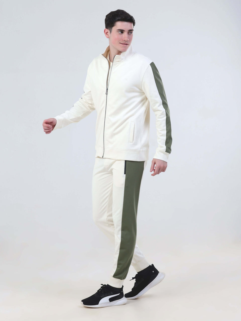 Premium White Full Warm Cotton Fleece Winter Tracksuit Set – Jacket & Track Pant (2-Piece Set)