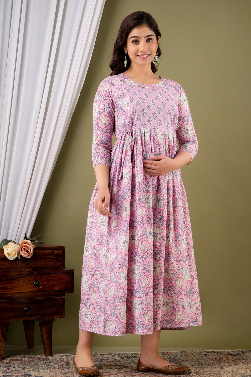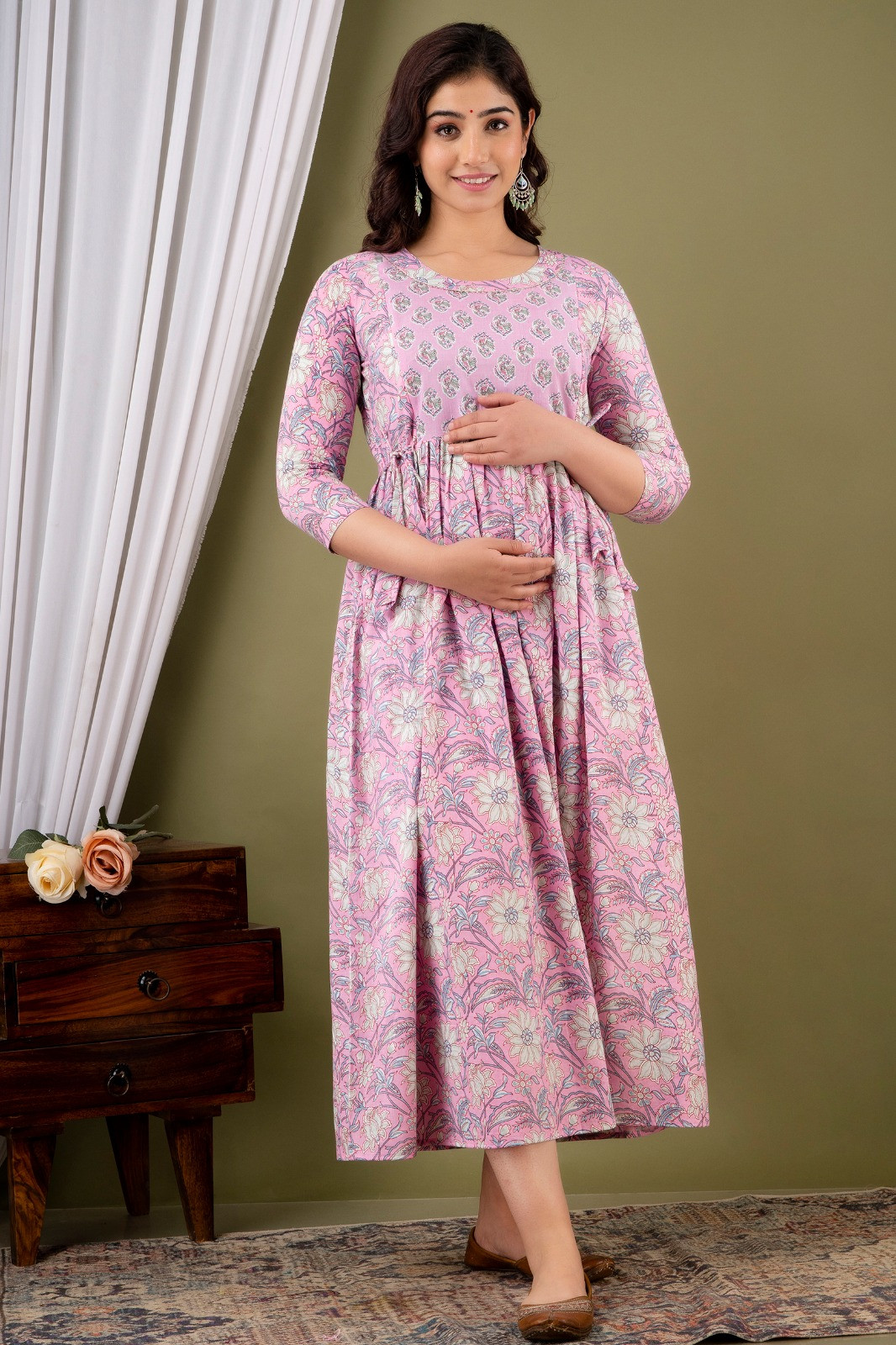Latest Anarkali Gown Style Western Dress is lightweight, breathable, stretchy & incredibly soft to the skin and keeps you cool all day long. The Feeding top has been designed uniquely plats around tummy area to hide Pre and Post Pregnancy baby bump beautifully.