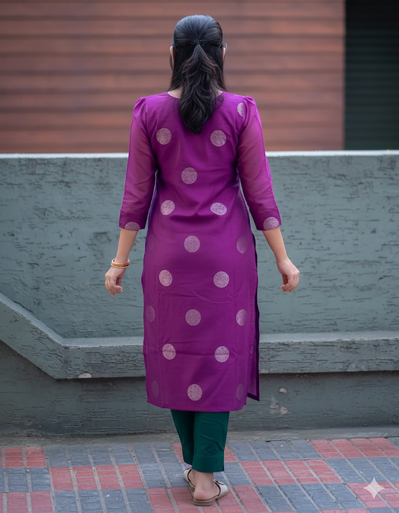 The beautiful purple kurta paired with a contrasting green pant and dupatta creates a stunning and eye-catching combination that reflects timeless ethnic charm.