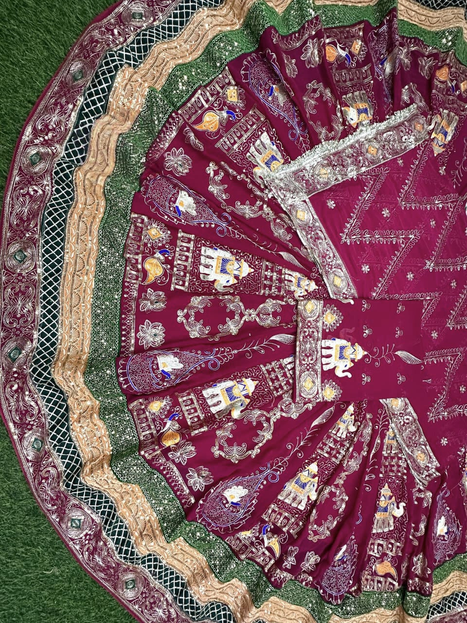 Rani Gorgette 5 Mtr Lehanga Flayer Rajputi Poshak -