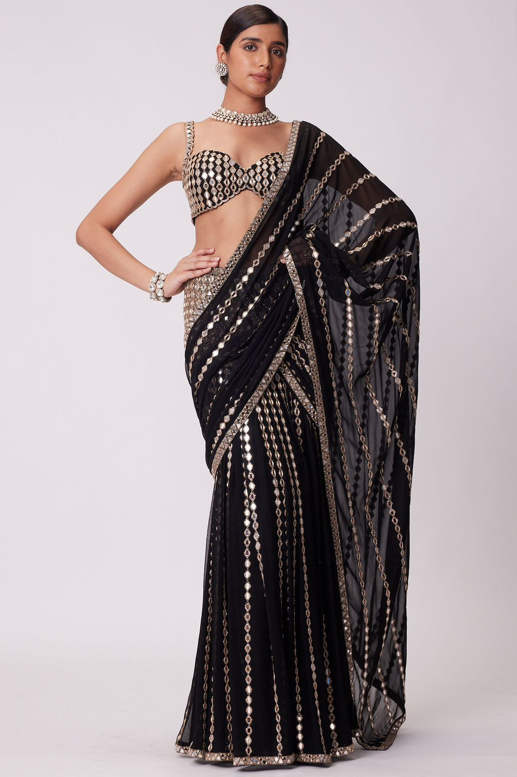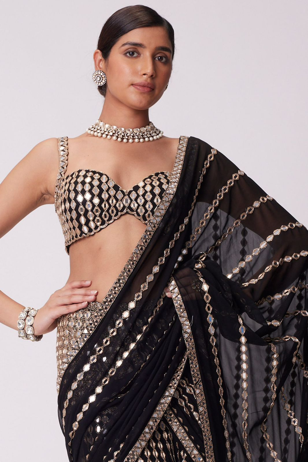 Blouse : Premium Faux Georgette Embellished With Dori Work And With Real Mirror Work ,Both Side work front and back( Unstitched )*