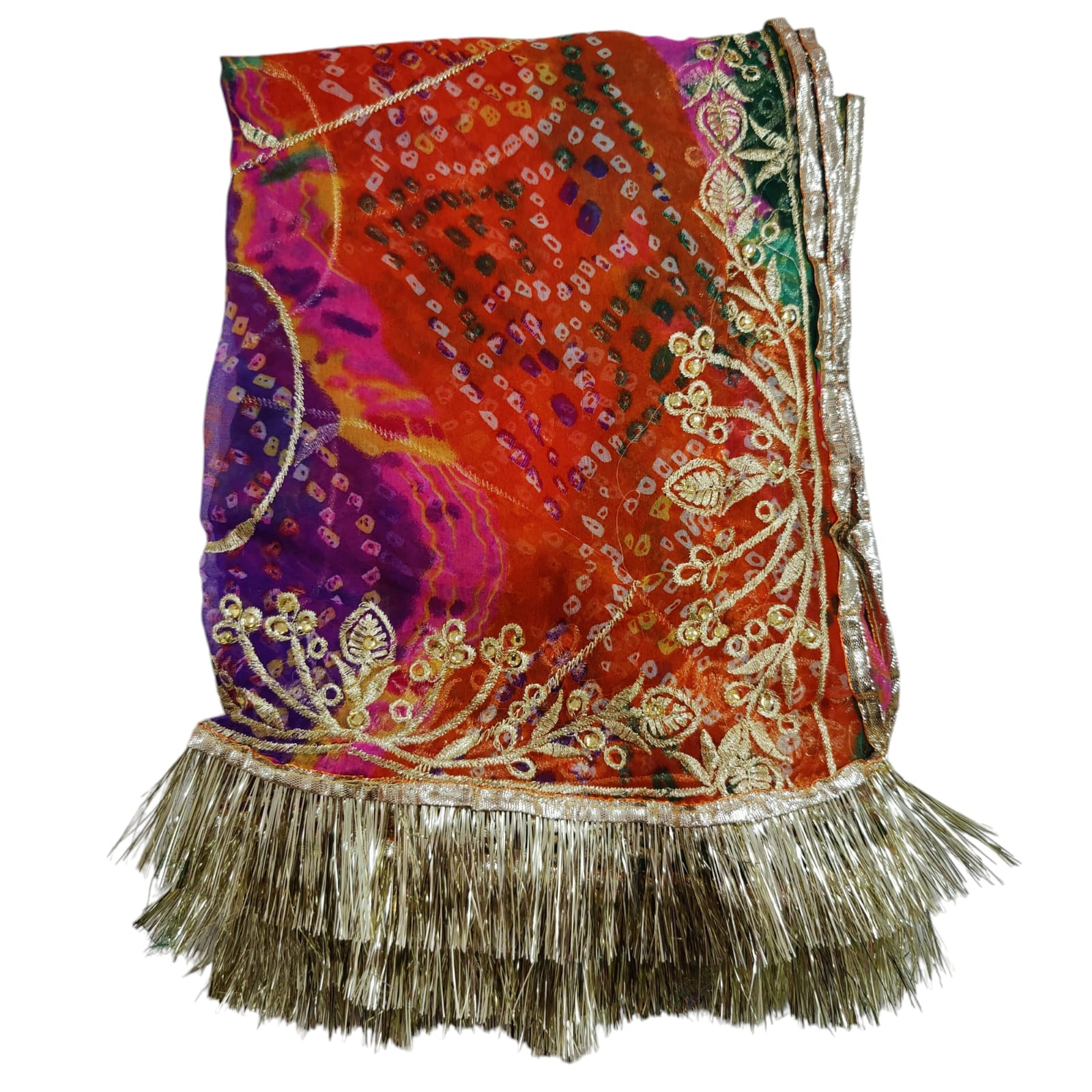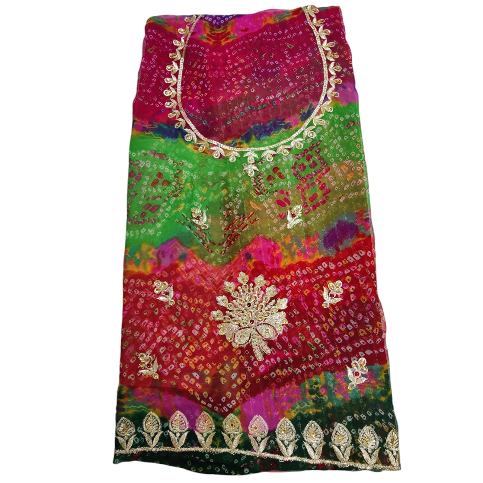 The royal Georgette Rajputi poshak is a traditional attire that beautifully reflects the rich cultural heritage of the Rajput community in India. Typically characterized by its vibrant colors and intricate embroidery, this outfit often includes a long skirt (lehenga), a matching blouse (choli), and a dupatta (scarf).