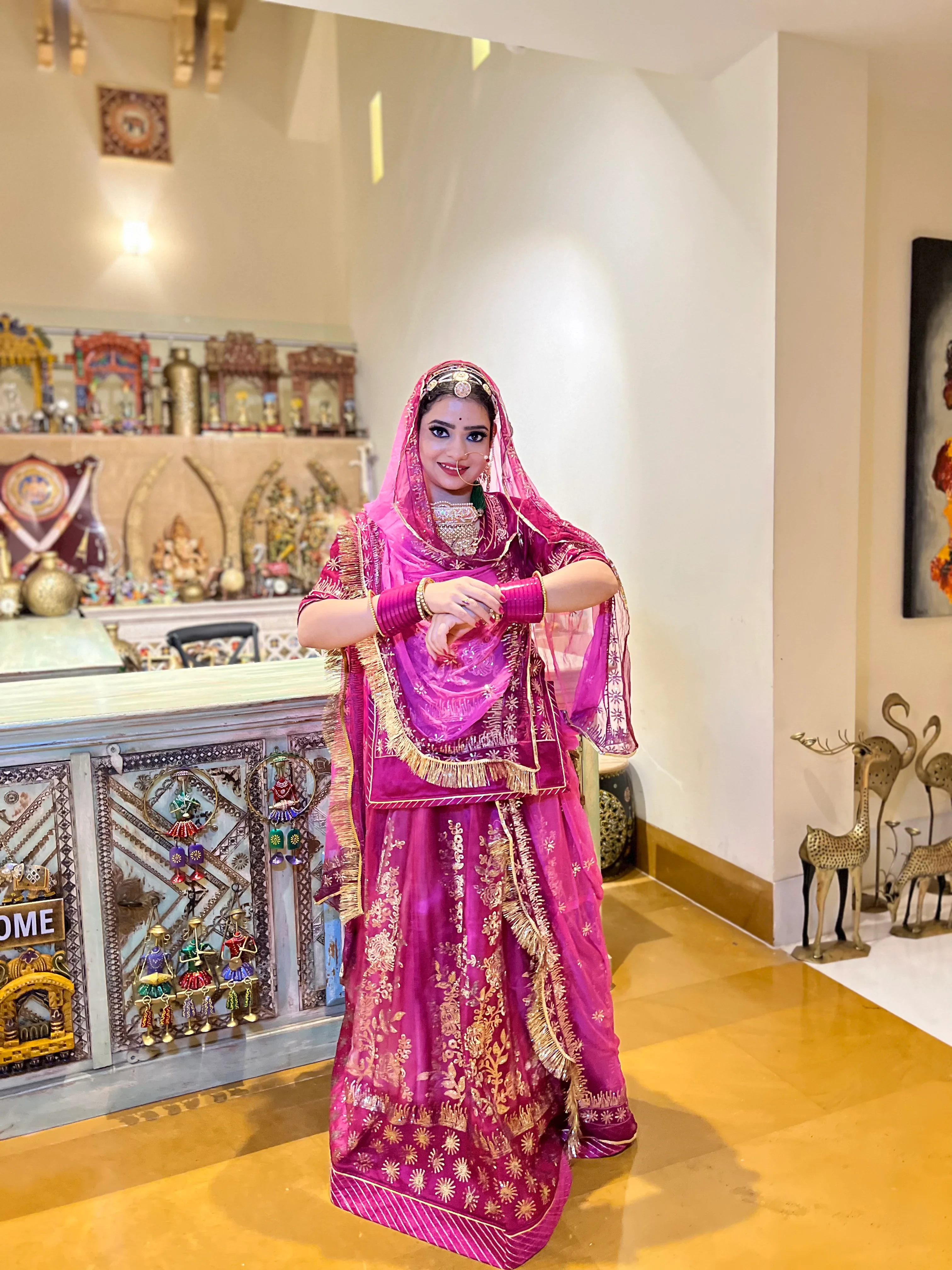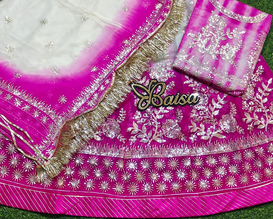 Embrace the symphony of tradition and glamour in every thread of this ensemble. Whether it's a festive celebration or a grand event, the "Silver Symphony" Organza Rani-Colored Poshak is designed to make you the epitome of grace and sophistication, leaving an indelible mark wherever you go.