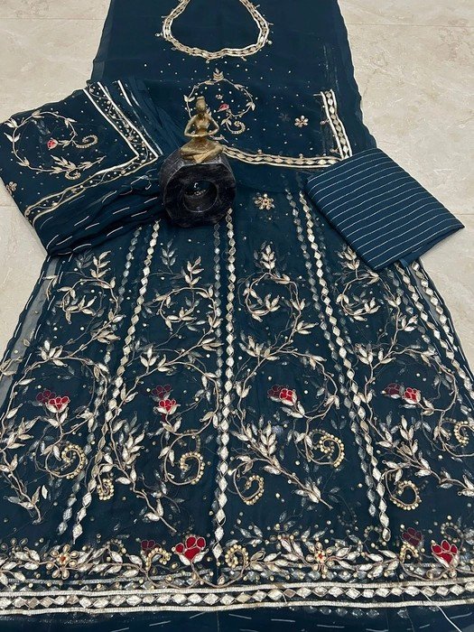 HEAVY HAND WORK PIPING STONE DIAMONDS GOTA PATTI POSHAK