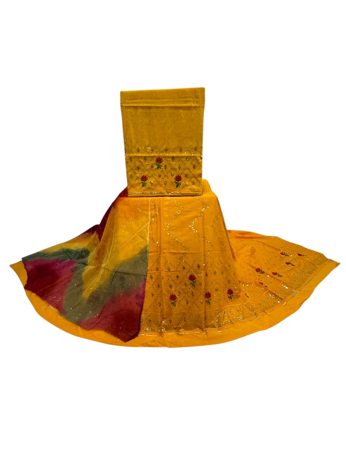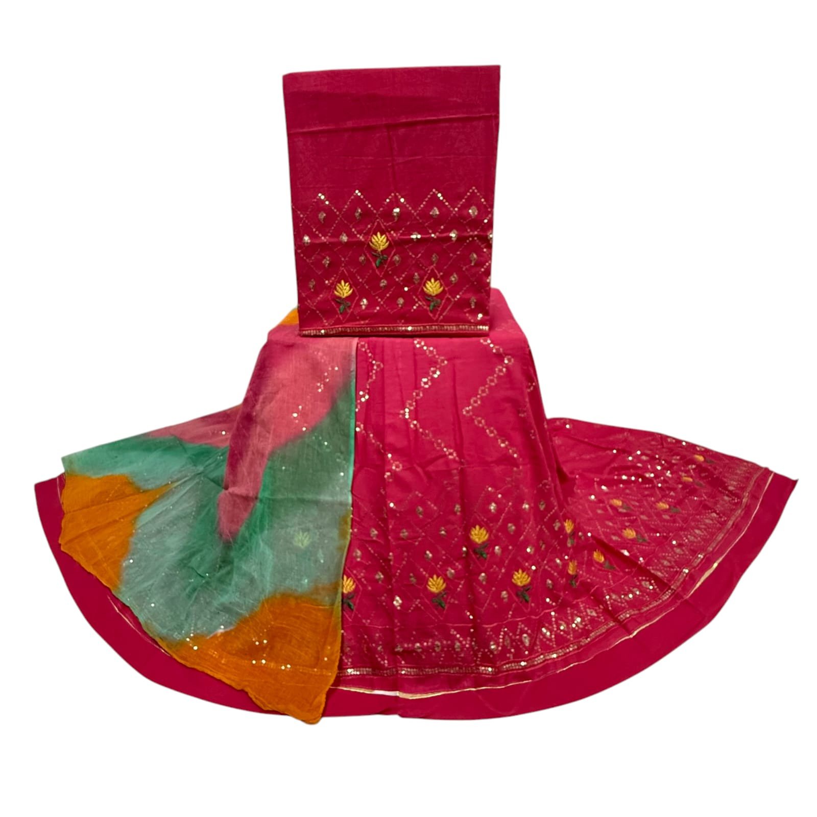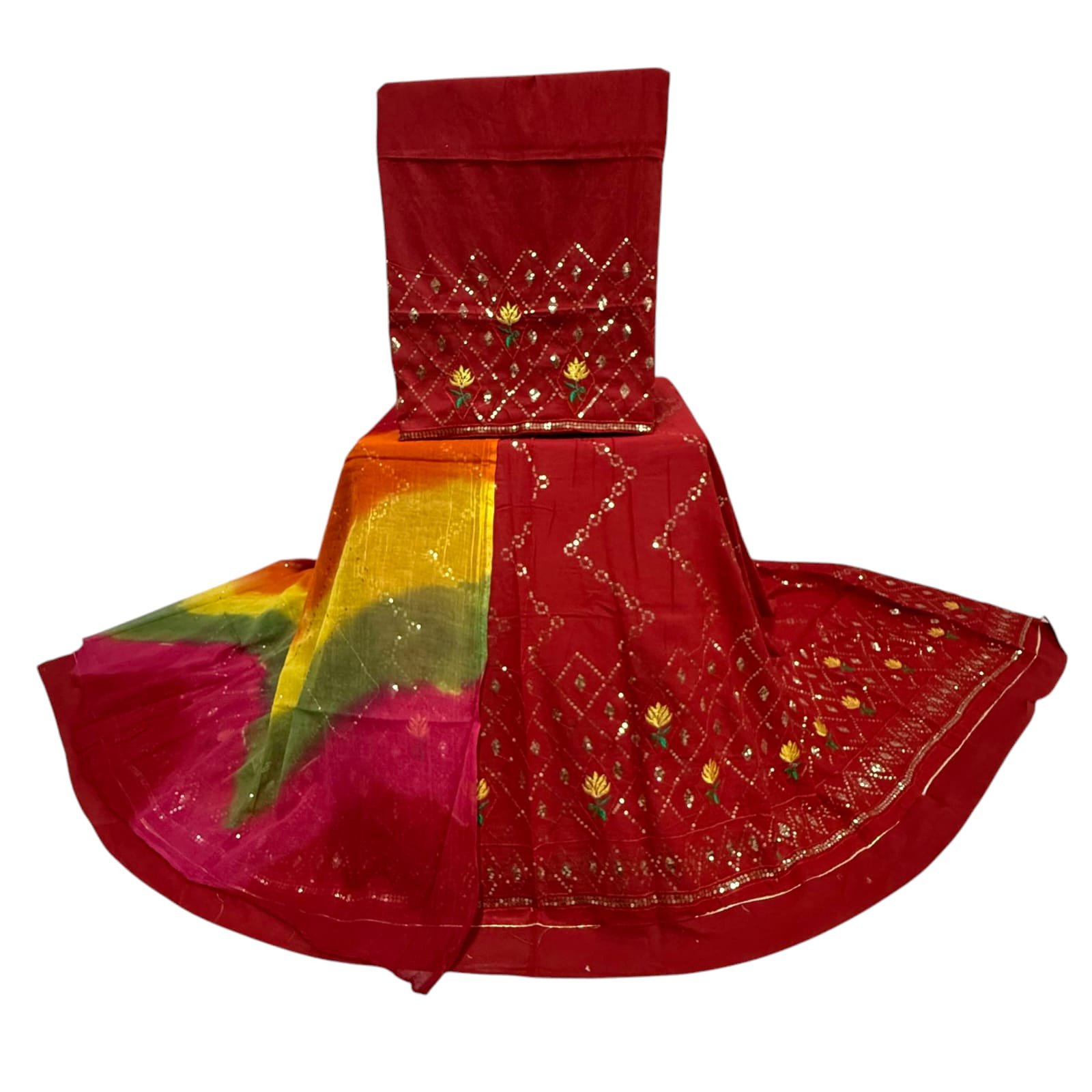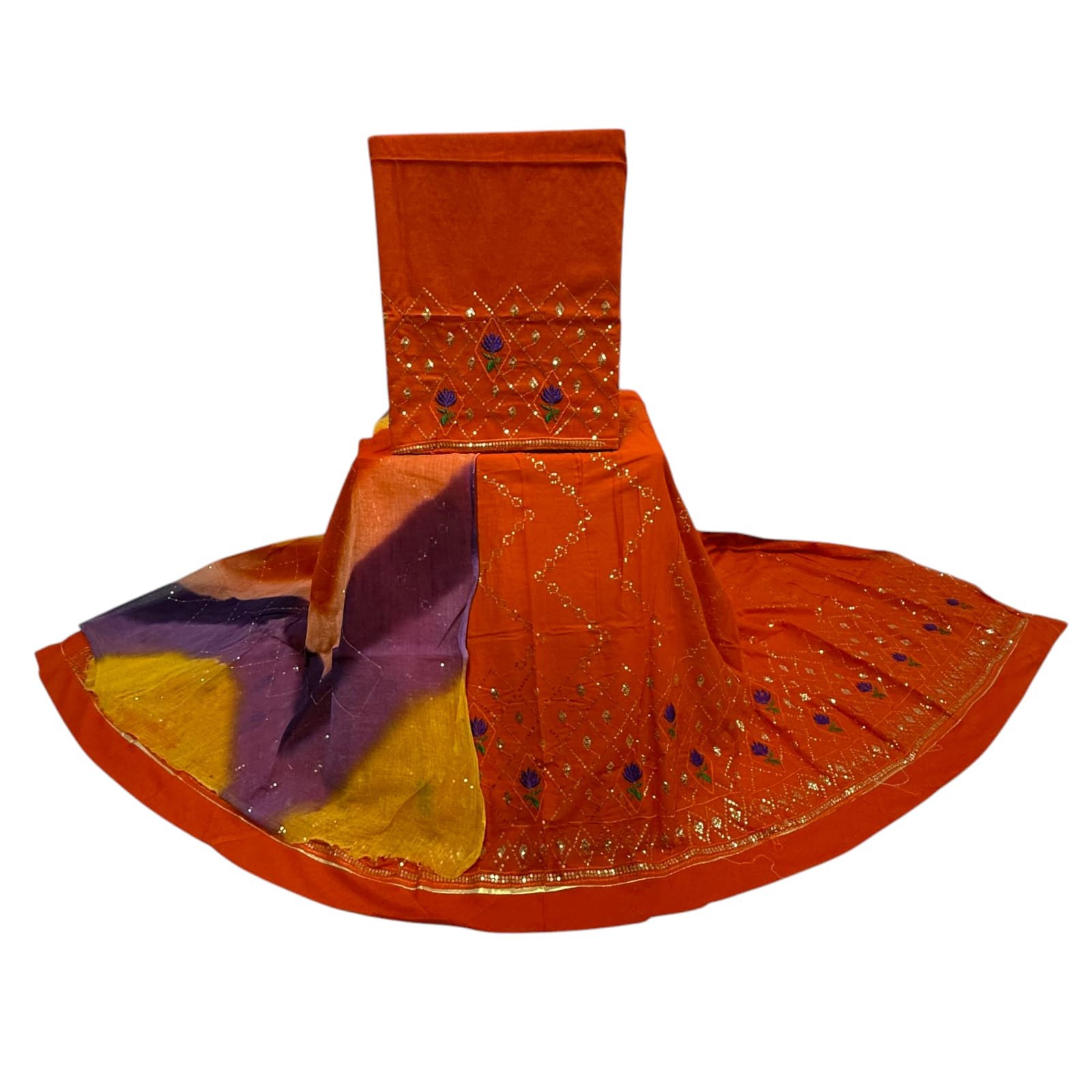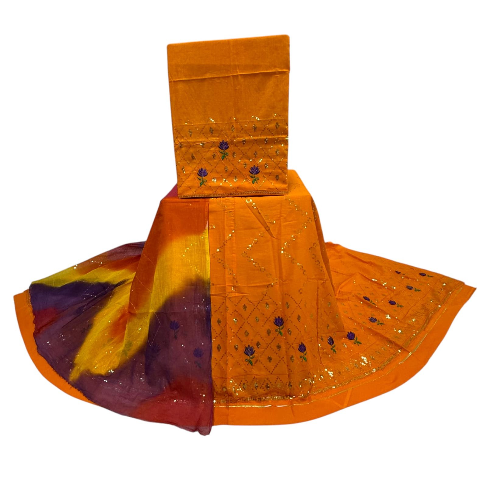 Stylish Sequin Work Cotton Suit with Multicolour Odhna