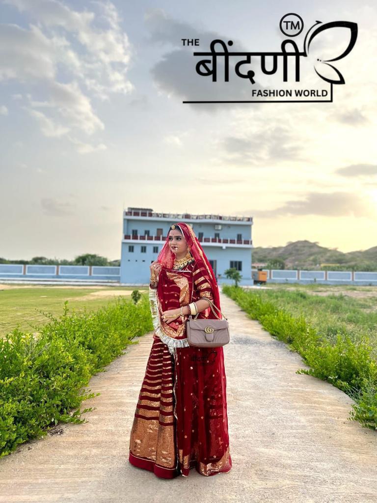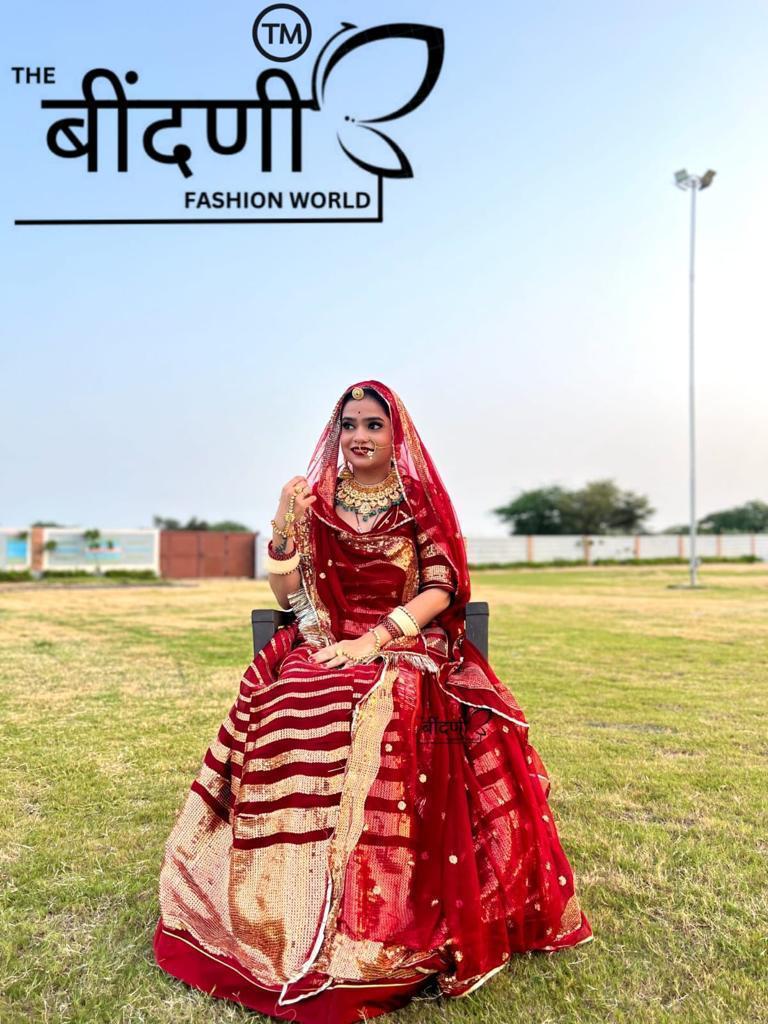 Tisu Siffon Boder Red Coloured With Sequence Work Rajputi Suit