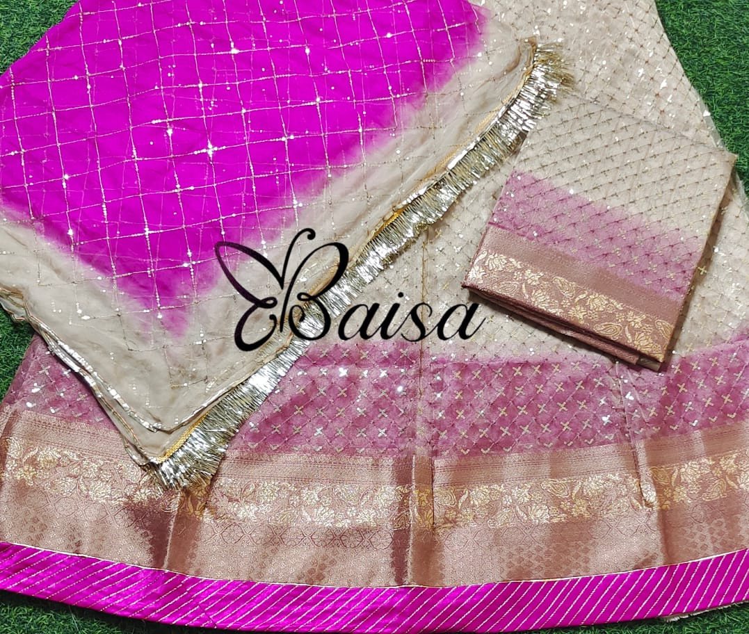 Banarasi Border: The intricate Banarasi border, often made from silk, features elaborate designs, such as floral patterns or traditional motifs, which add a touch of opulence to the outfit.
