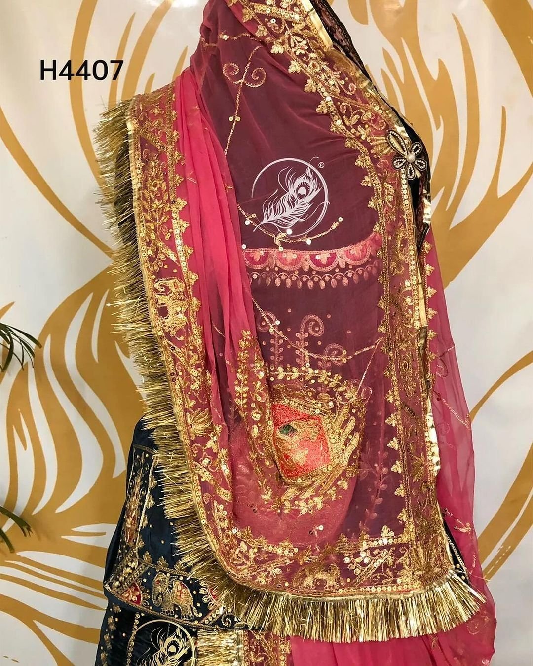 Hevy Odhni fore side work with Hevy Pallu Butta work