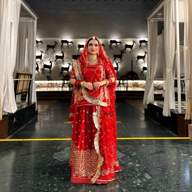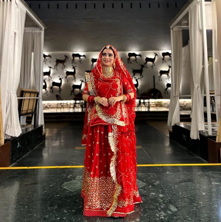 Red Coloured Humrahi With Sequence And Boder Work Rajputi Poshak