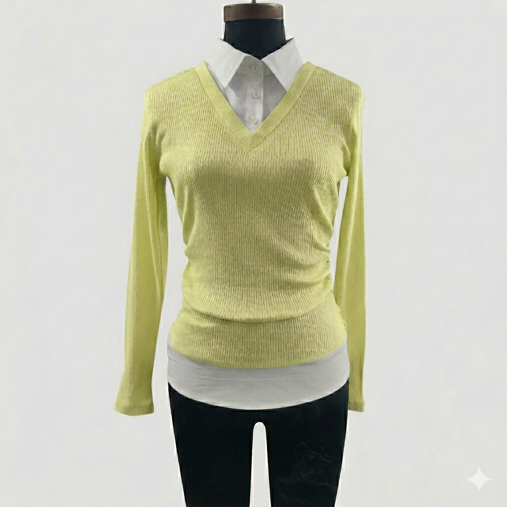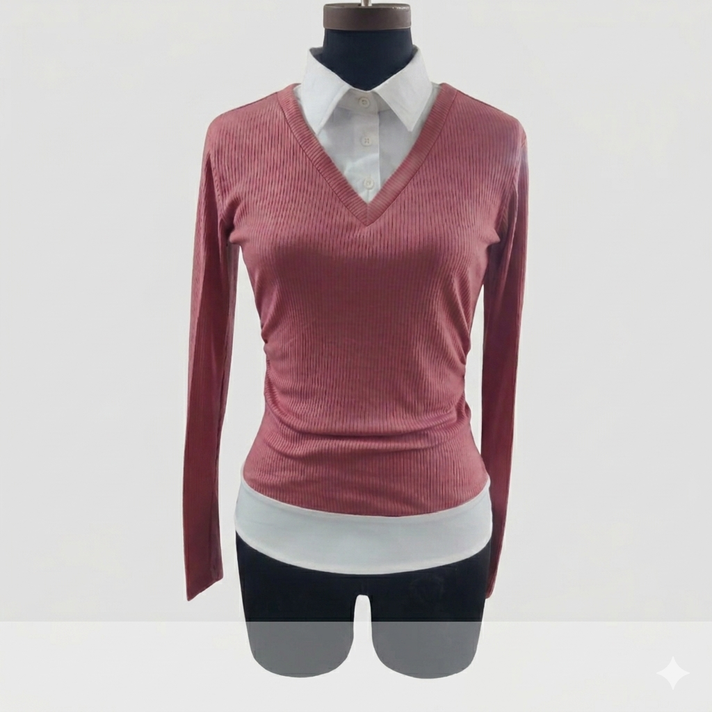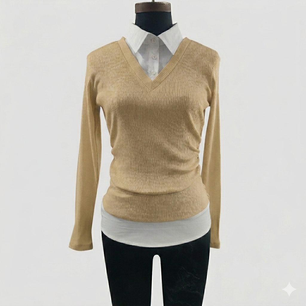 Designed for effortless chic, this top features a refined shirt collar that adds a polished finish, perfect for transitioning from casual outings to more dressed-up occasions. Whether you're pairing it with your favorite jeans for a relaxed weekend look or tucking it into a skirt for a smart office ensemble, this top promises to be your new go-to. Experience the perfect blend of comfort, style, and versatility that will keep you looking and feeling your best all day long.