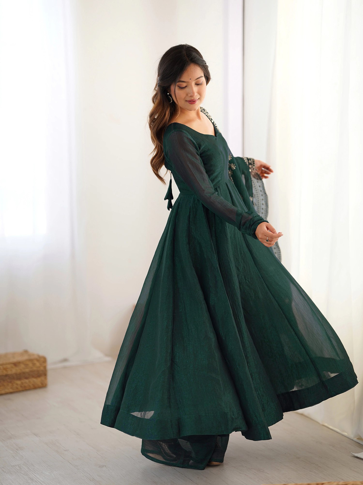 Elevate your ethnic style with this elegant Women’s Kurta Pant Dupatta Set crafted from premium vichitra fabric. The beautifully embroidered kurta with a graceful 44-inch length and 3/4th sleeves adds charm and sophistication. Designed in a soothing green color, this set is perfect for festive occasions, parties, and family gatherings.