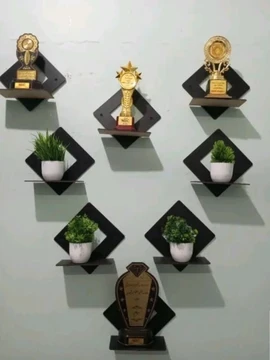 Enhance your living room with this stylish wooden wall shelf set, designed to add both elegance and functionality to your home. Crafted from high-quality engineered wood, these diamond-shaped shelves are perfect for displaying trophies, small potted plants, photo frames, or decorative items.