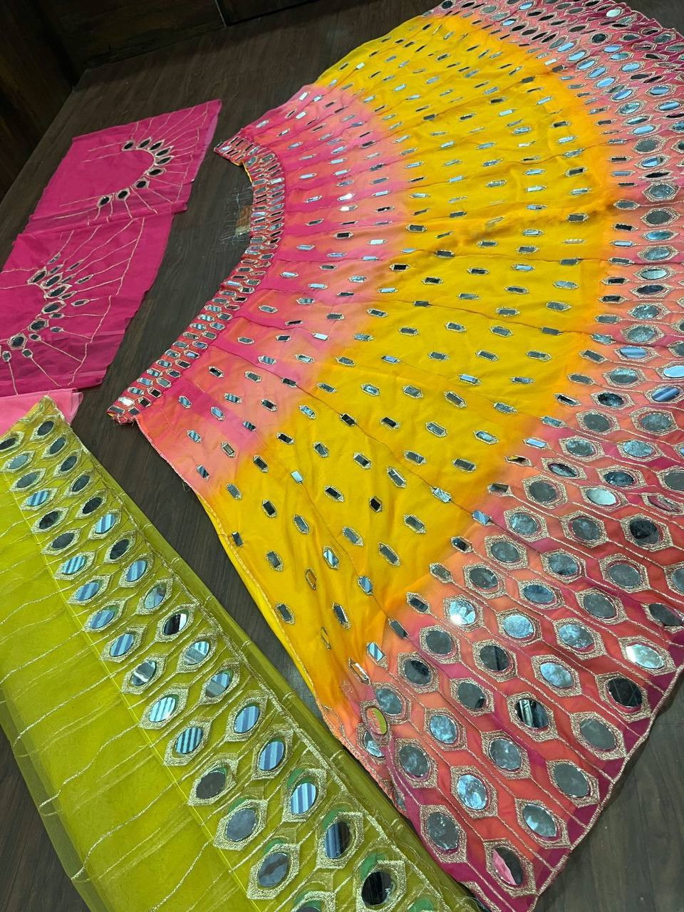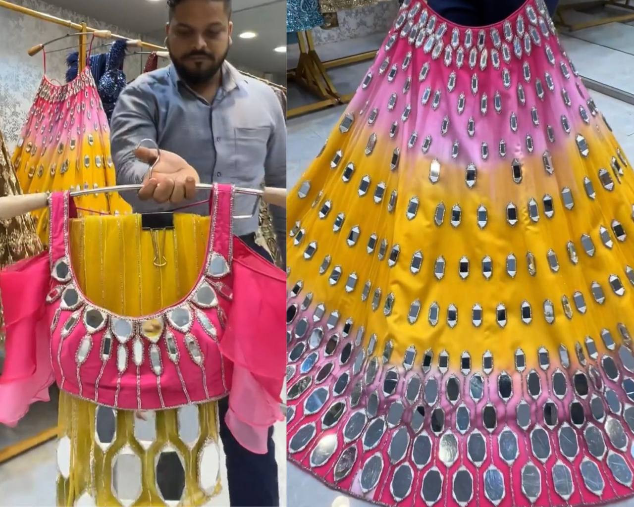 Step into elegance with this luxurious Fox Georgette Real Mirror Embroidery Lehenga Set, crafted for modern brides and festive divas.