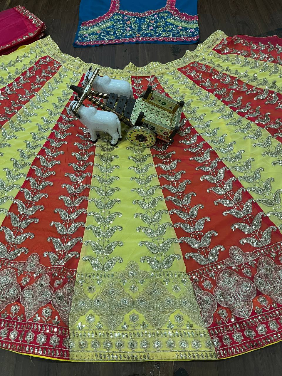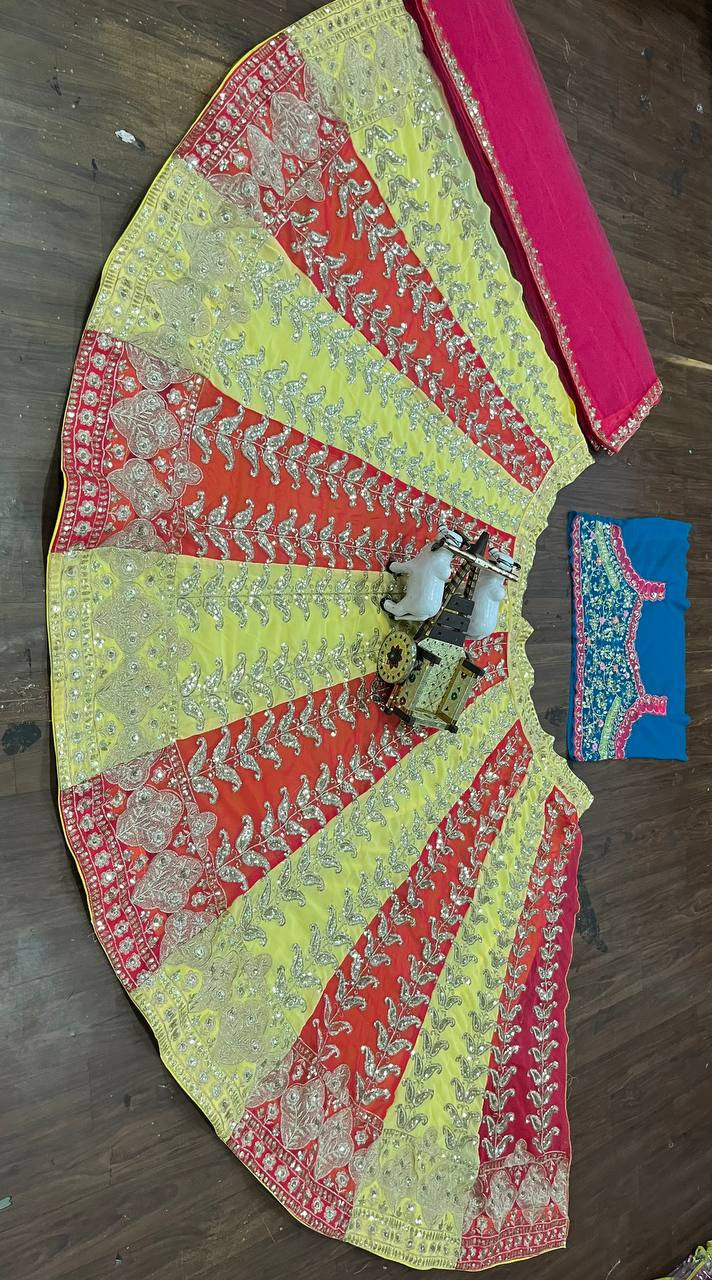 Step into the spotlight with this 3.5 Meter Flared Fox Georgette Lehenga, a perfect blend of luxury, comfort, and craftsmanship. Designed to make every twirl mesmerizing, this lehenga features rich sequins embroidery, enhanced with can-can and canvas layers for a voluminous royal look.
