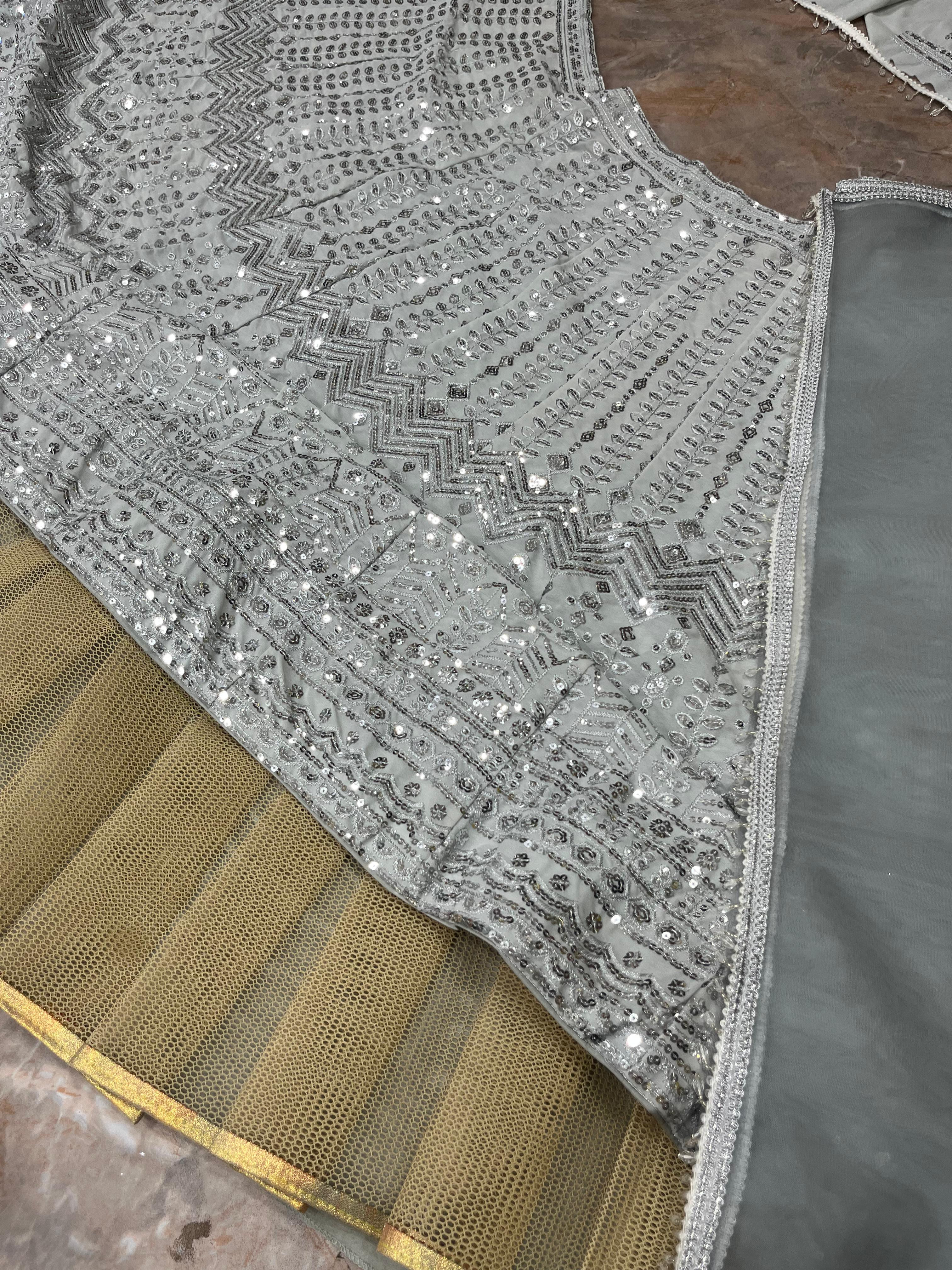 Lehenga Work: Embroidery Sequins with Can-Can & Canvas Patta