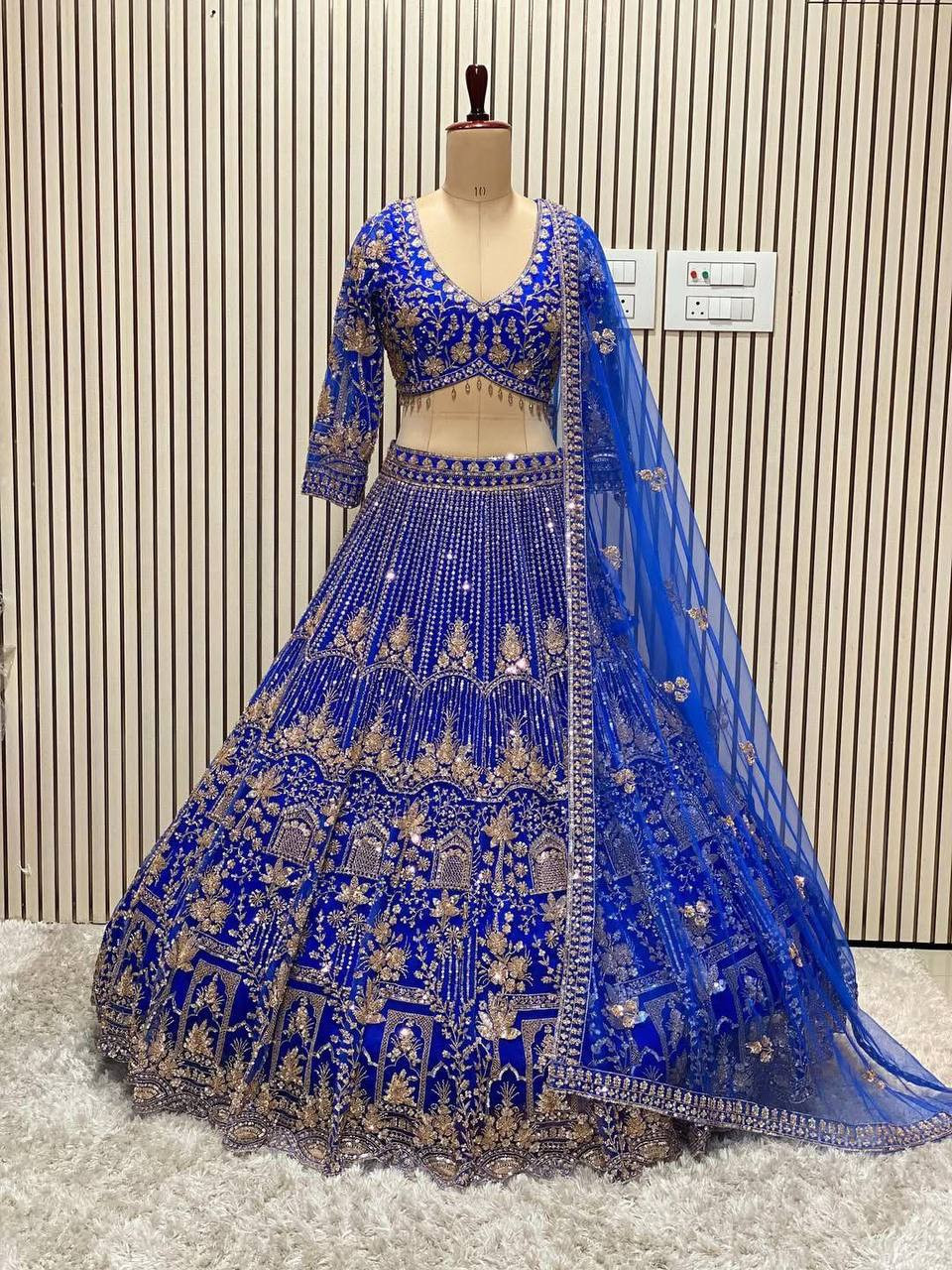 The semi-stitched lehenga ensures a perfect fit up to size 44, while the unstitched blouse piece allows custom tailoring to your style. Complete your look with the matching sequins-embellished dupatta, creating a breathtaking ensemble for weddings, receptions, or festive occasions.