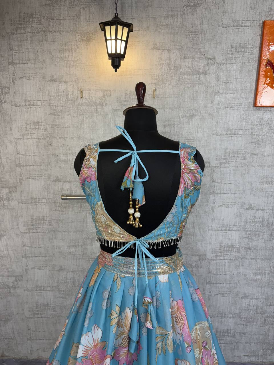 Step into elegance with this 4 Meter Flared Premium Quality Star Georgette Lehenga, designed to make every occasion unforgettable. Crafted with precision, it features a luxurious digital print enhanced by Can-Can and Canvas Patta for a voluminous royal silhouette.