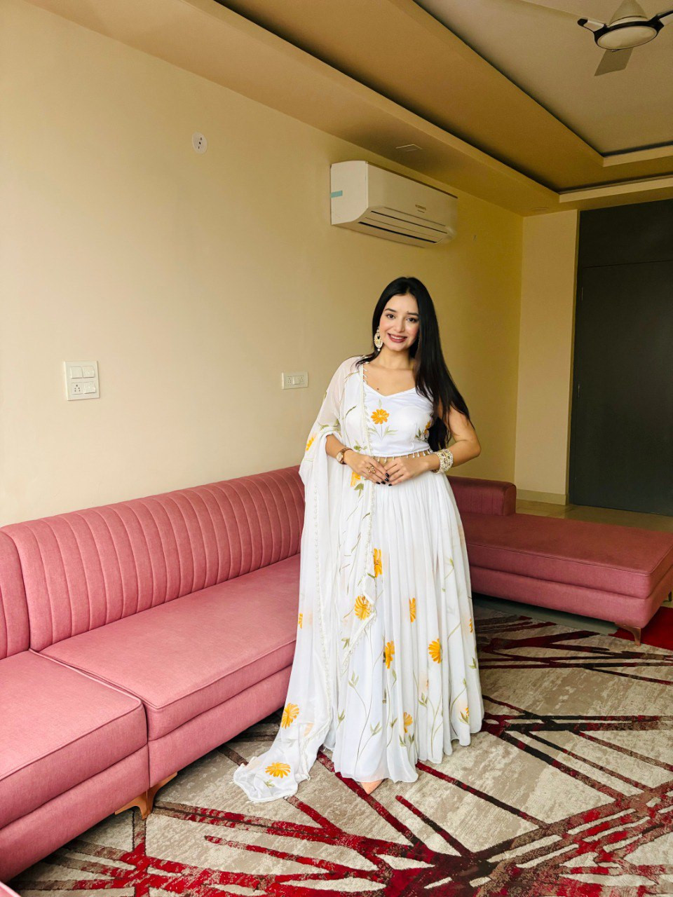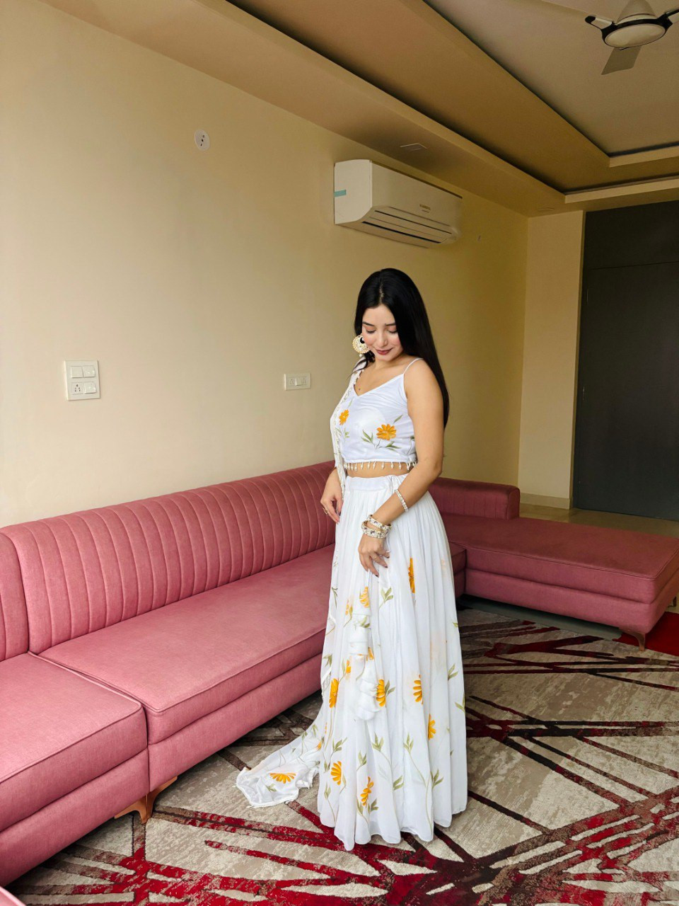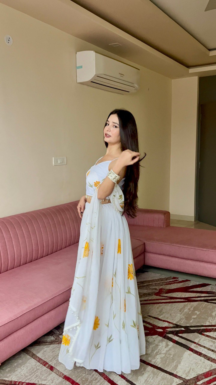 Lehenga – Pure Organza hand-painted floral design with a 4.5-meter flair