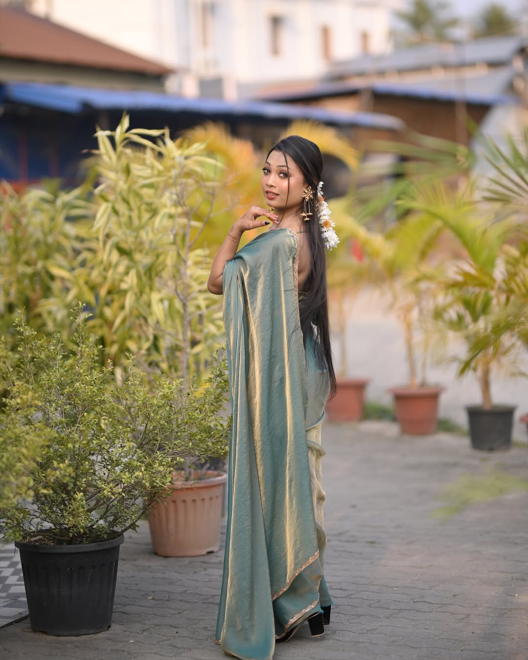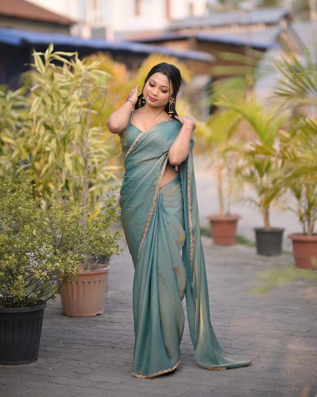 FABRIC : Golden Tissue. simmri saree with handwork lace