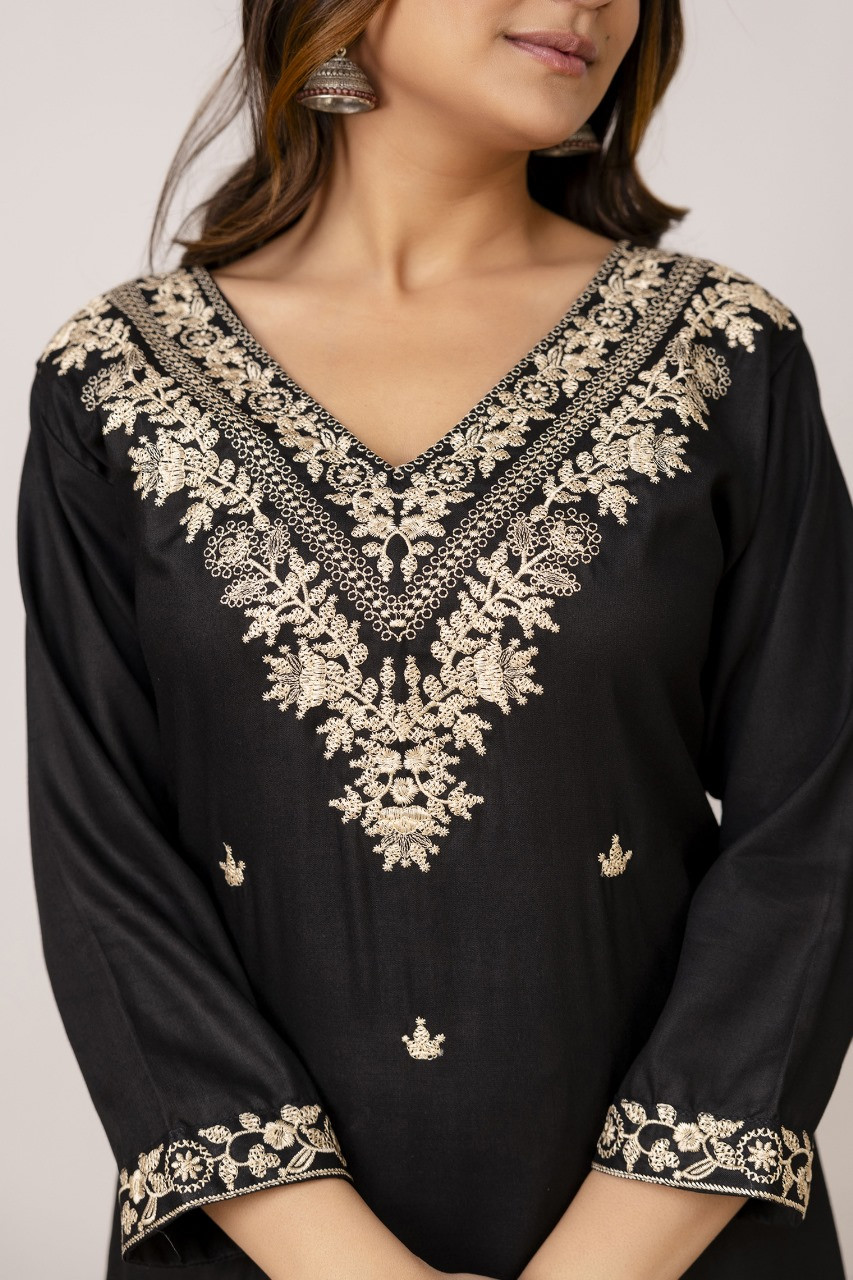 Beautiful heavy reyon Kurti Afghani Pant set with beautiful embroidery work