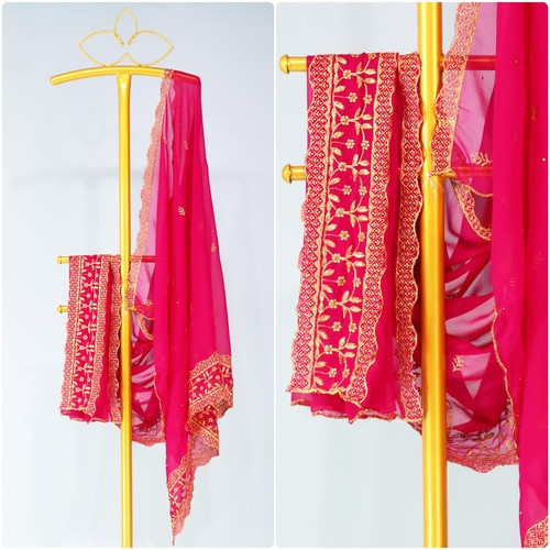 Work: Embroidery Work All over Dupatta With Cut Work Border and Hand Stone Work.